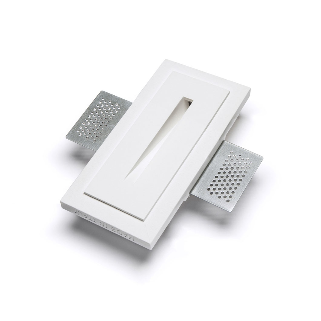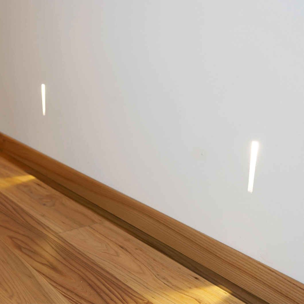 The 9010 Novantadieci Ago Small 4100E emits a subtle step washing light from a long, thin rectangular groove inside the wall. Minimal and elegant, the Ago Small path marker uses a 2W LED that is available in 2700K, 3000K or 4000K colour temperatures. Handmade in Italy from an advanced compound technology developed by 9010 called CRISTALY® - see below. Plastered seamlessly into the wall, the Ago Small step light can be painted with any water-based paint. This allows the fitting to blend with the surrounding space whilst keeping stairs, passageways and hallways safe.
