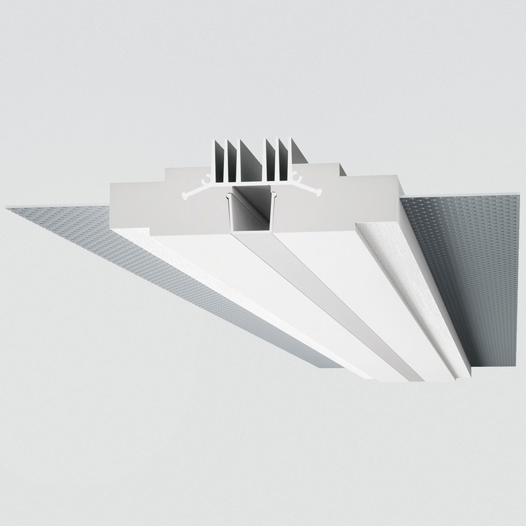 The Ayla 4189 linear profile by 9010 combines with LED tape to create straight linear lines of soft light in ceilings and walls. Plastered into the ceiling for a clean recessed finish, the profile is made from ALUMITE® with built-in heat sink, with the plaster-in section made from an advanced compound technology developed by 9010 called CRISTALY® - see below.
