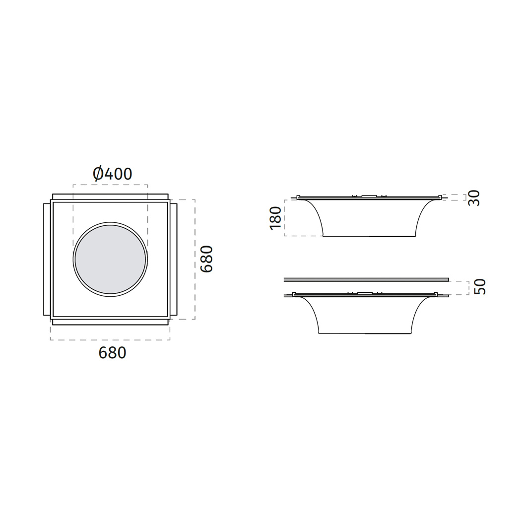 The 52W LED produces a lumen output between 5700-6360lm, making Bolla perfect for both residential projects and for commercial spaces - lighting living rooms, dining rooms, restaurants or offices with equal ease. Available in 2700K, 3000K and 4000K colour temperatures. Handmade in Italy, Bolla is plastered seamlessly into the ceiling and can be painted with any water-based paint, allowing the fitting to appear to taper out from inside the building. Made from an advanced compound technology developed by 9010 called CRISTALY® - see below.