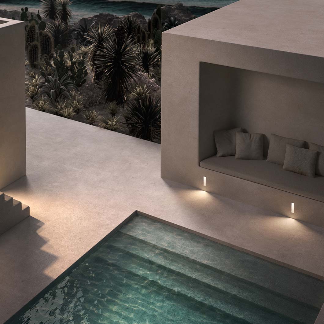 An innovative family of wall recessed outdoor lighting, Cave Small by 9010 Novantadieci is designed to wash steps, staircases, and paths in light. Compatible with cladding insulation, the Cave Small is the smallest fitting in the family with a visible height of just 20cm.