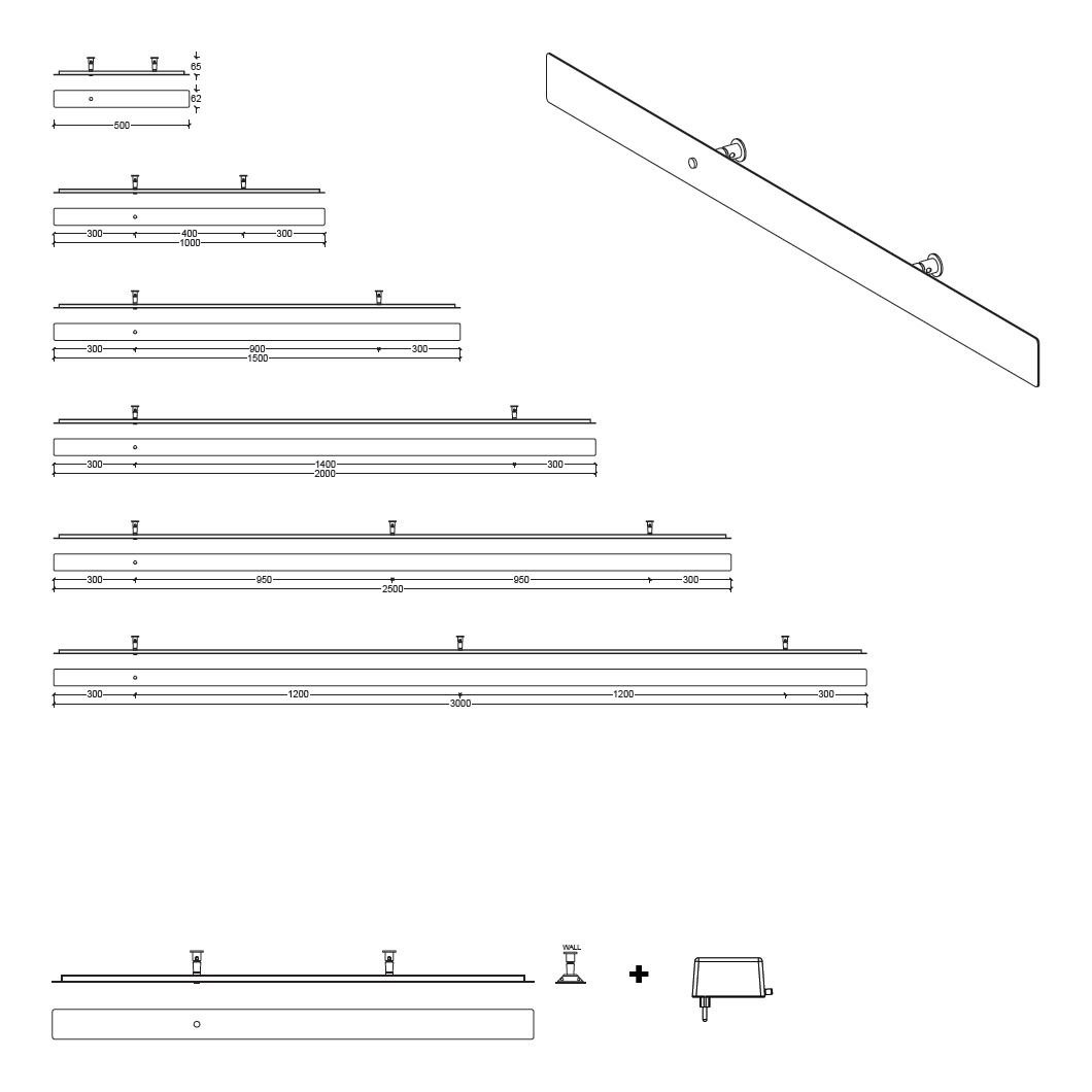 Product dimensions: W.1000mm x D.65mm x H.62mm