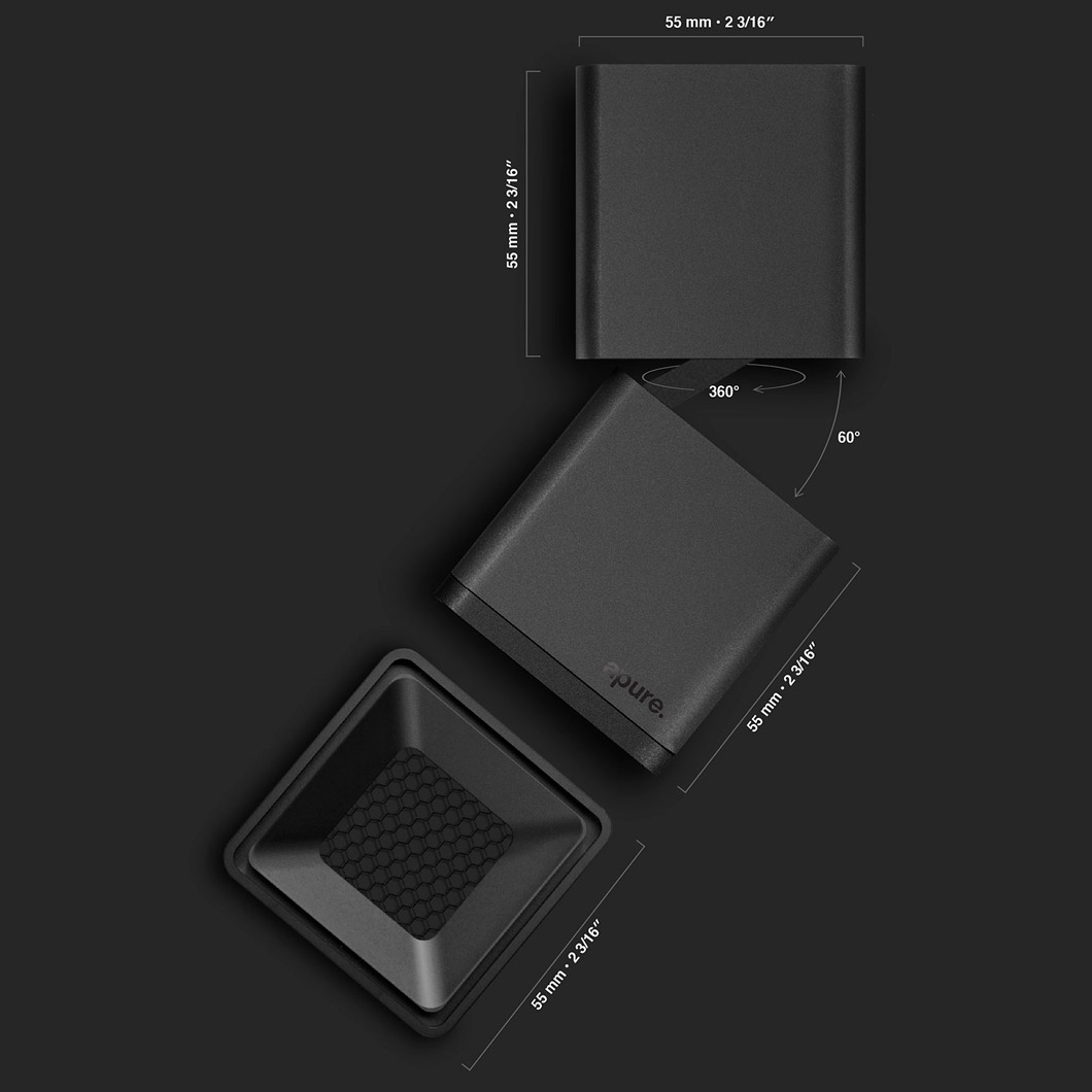 Minimal and graphic in design, the ARTUS LAC surface mounted spotlight by Apure offers adjustable flexible lighting for when recessed lighting can't be installed. With a sleek size of 55mm x 55mm x 110mm, a rotation of 360 degrees and a tilt angle of up to 60 degrees, the ARTUS LAC also features spot, narrow flood and wide flood beam angles that allows for multiple applications.
