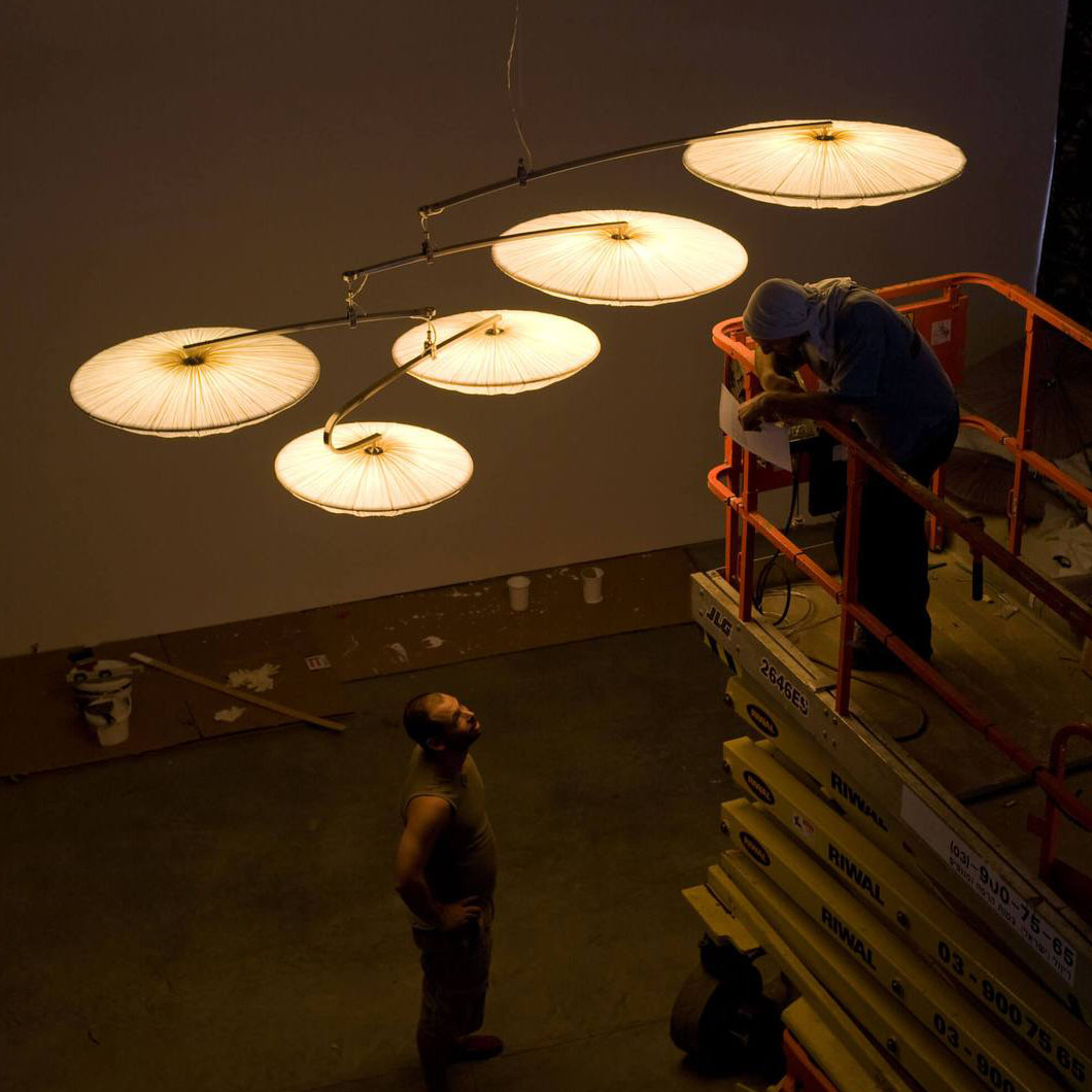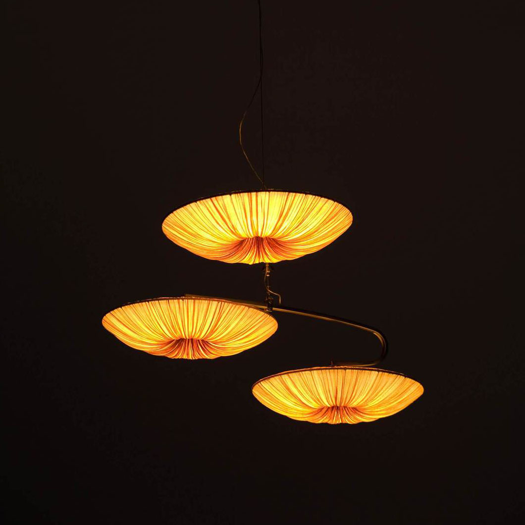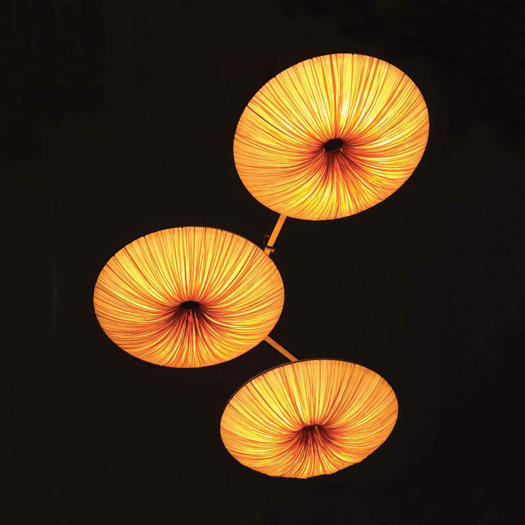 Appearing as sleek rings which float weightlessly from the ceiling, Stand By Mobile is an intriguing cluster of pendants whose distinctive design succeeds in becoming the main decorative focus of any interior space. The Stand By collection is distinct in their circular form, geometric line design and ability to project a bright LED glow across an interior space.Boasting a eye-catching & elegant design, Stand By amazes with its circular structures and handcrafted silk body.