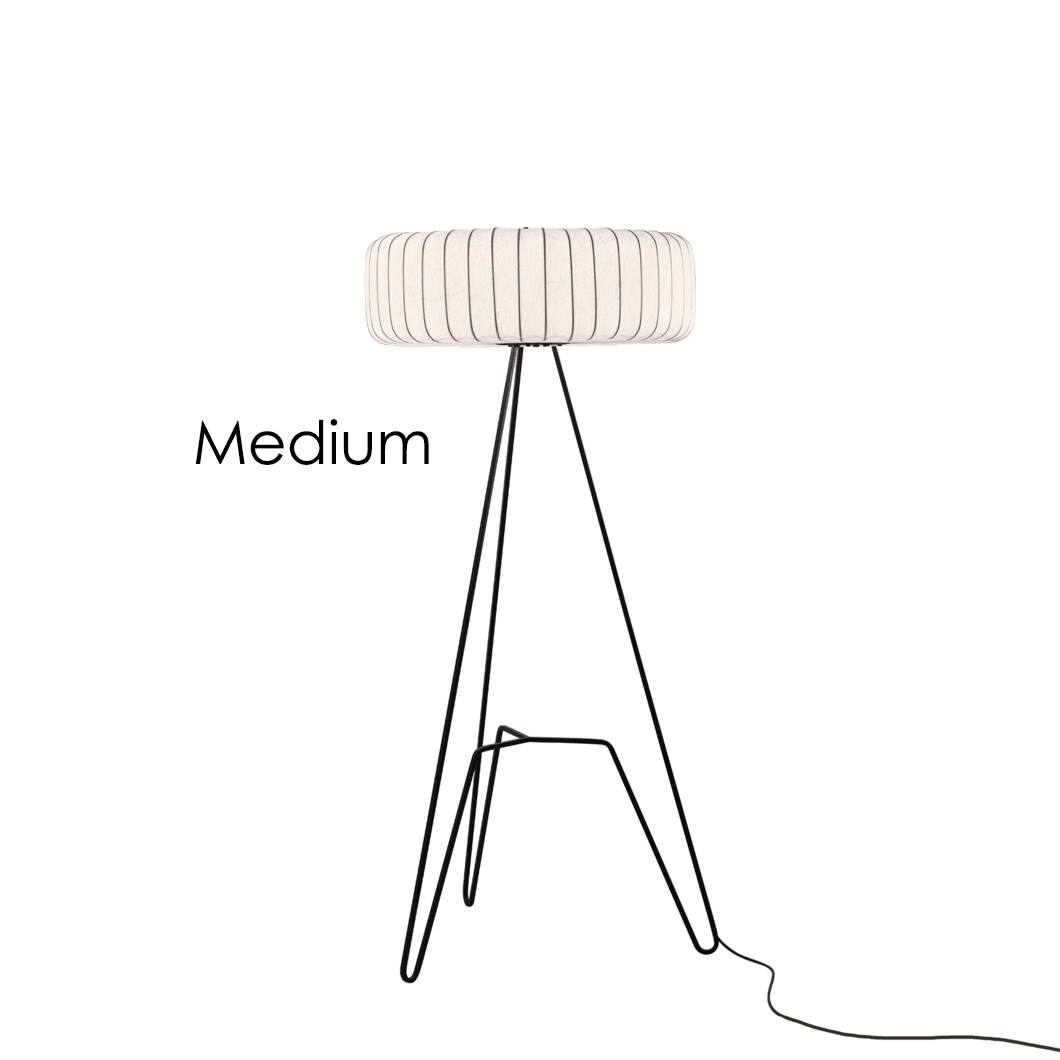 Totem M is distinct in its shorter-yet-wider shaped shade, which creates character for the floor lamp. The design of the Totem family maintains its iconic design across all products: a classic white diffuser crafted from cocooning polymer, which is embellished by subtle black vertical lines which give the pendant a distinct identity. Firmly mounted to its striking steel base, the Totem floor range incorporates the stunning form of its pendant siblings whilst providing a bright LED glow to specific areas within an interior.