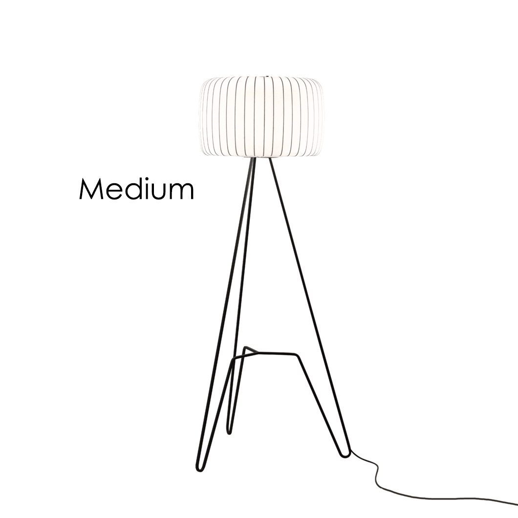 Te is the discrete middle-ground between To and M, with the perfect lamp size and shape for a decorative floor lamp. The design of the Totem family maintains its iconic design across all products: a classic white diffuser crafted from cocooning polymer, which is embellished by subtle black vertical lines which give the pendant a distinct identity. Firmly mounted to its striking steel base, the Totem floor range incorporates the stunning form of its pendant siblings whilst providing a bright LED glow to specific areas within an interior.