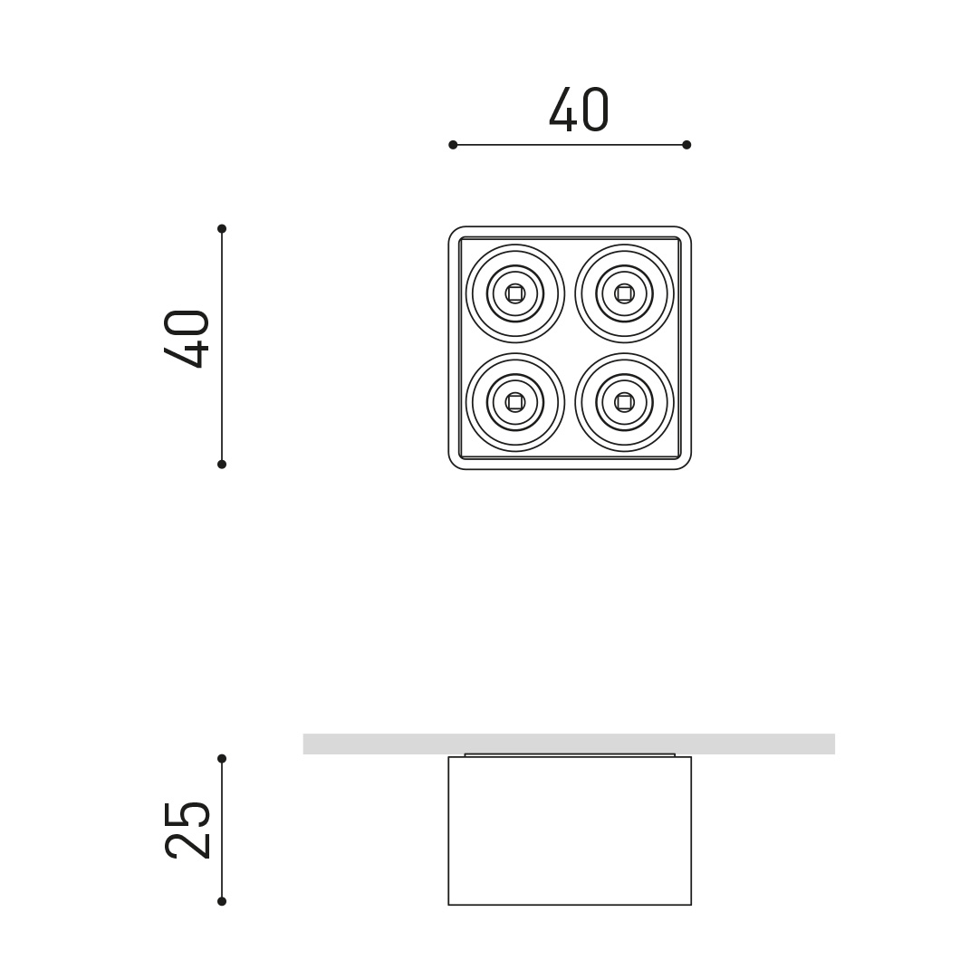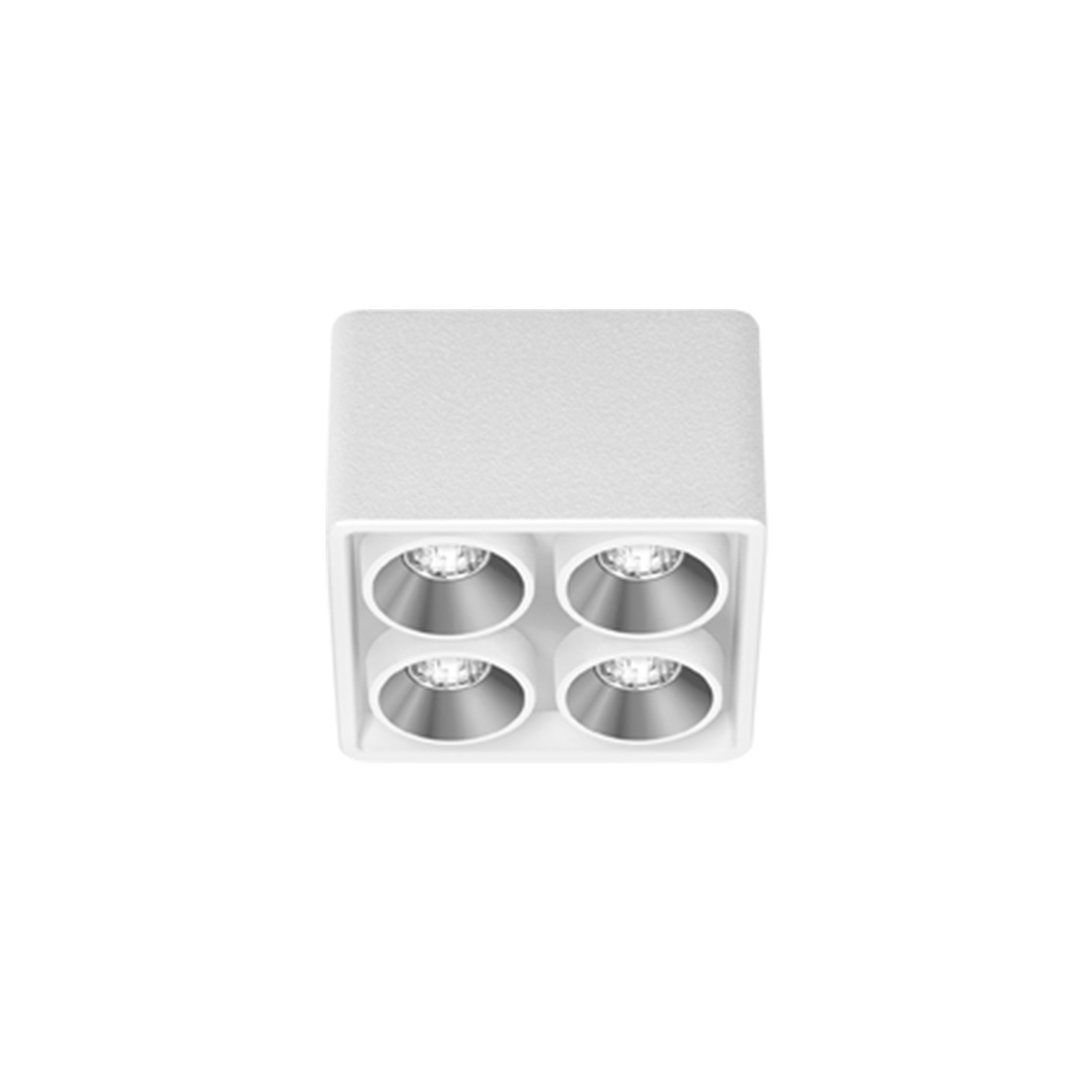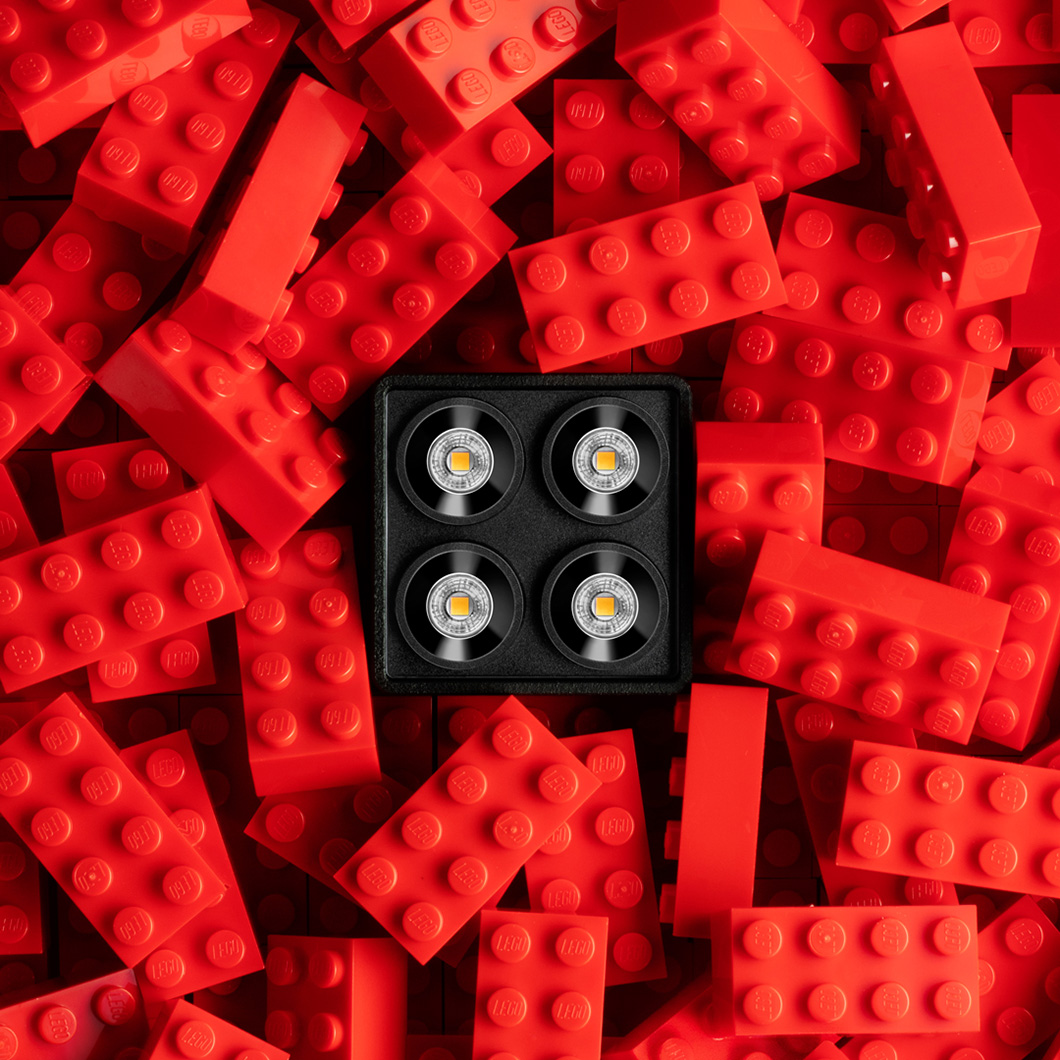 The Black Foster Micro Surface 2x2 LED Ceiling Light by Arkoslight is a discreet downlighter with a compact form, made for indoor use. The square-shaped luminaire is just 40mm wide with a depth of 25mm, holding 4 miniature lamps. The downlight is powered by a 5.6W LED, with a 37° beam angle on each lamp.