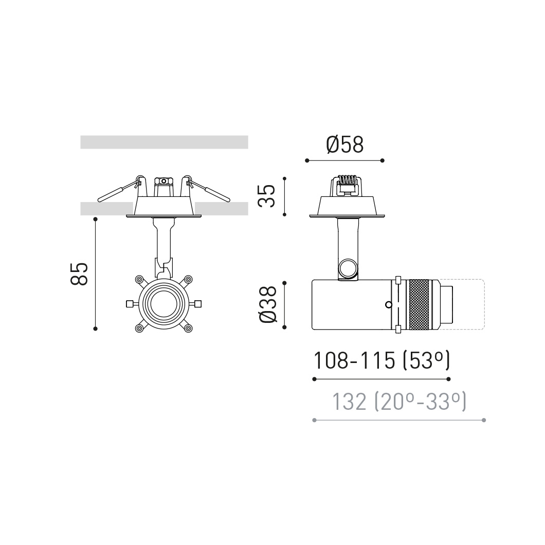 Coco Shaper by Arkoslight is an adjustable, semi-recessed spotlight, particularly suitable for art and gallery lighting. This flexible artwork spotlight provides uniform light distribution with a choice between a wide 53° beam angle or a narrow to medium 20°-33° beam angle. With a 350° rotation and 90° tilt, the Coco Shaper is ideal for illuminating wall art or sculptures, whether in a professional gallery or a home art installation.