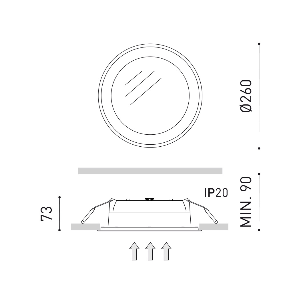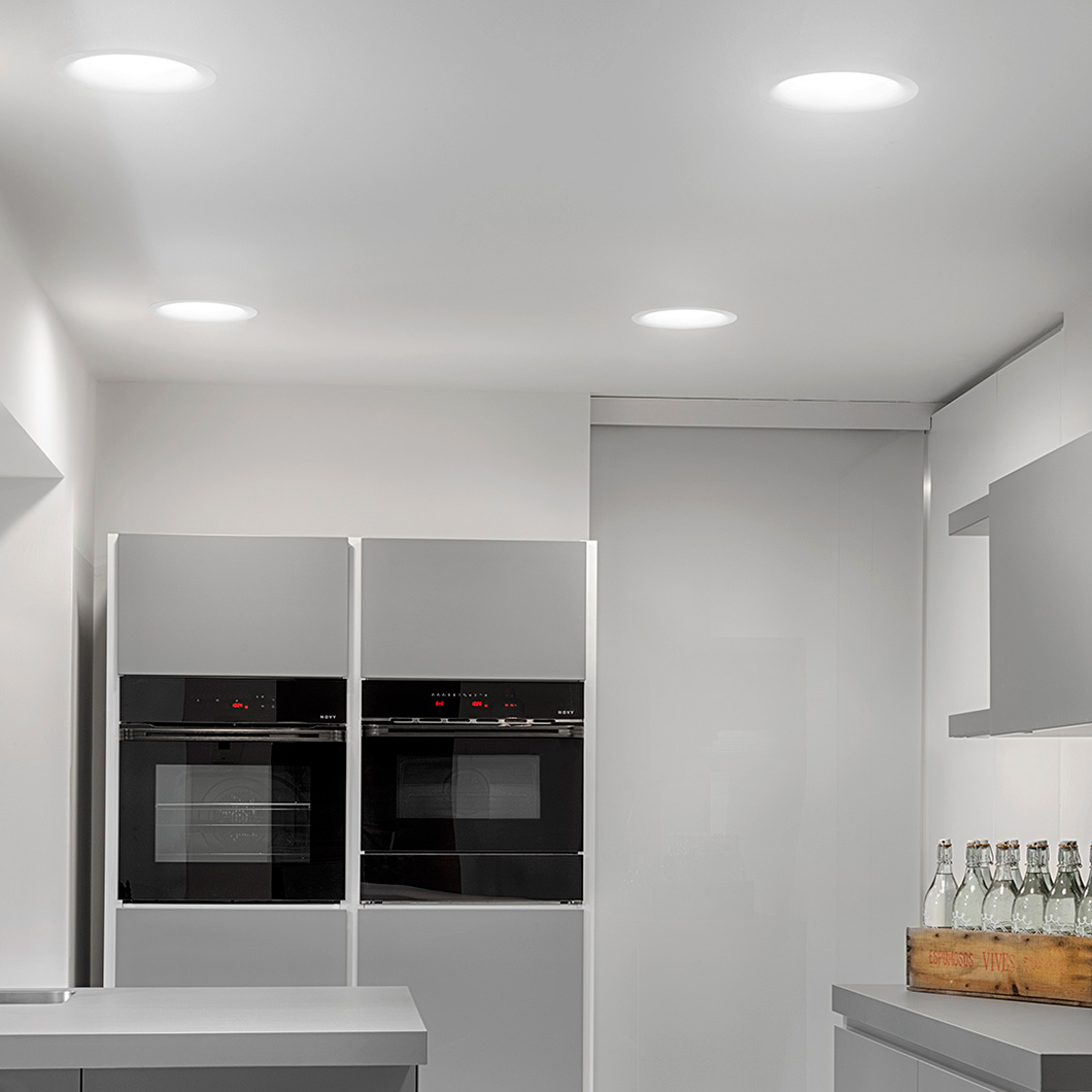 Drop is made in a textured white finish for clean, easy integration into the ceiling. The luminaire offers three different colour temperatures: choose between a warm white 2700K, home white 3000K, or a cool white 4000K. Drop is supplied with an integrated LED, holding either 10.5W, 15.5W, or 22W power. Then choose between IP43 or IP54 versions for your desired level of protection. Available in non-dimming, Push dim, or DALI variants. Driver included.
