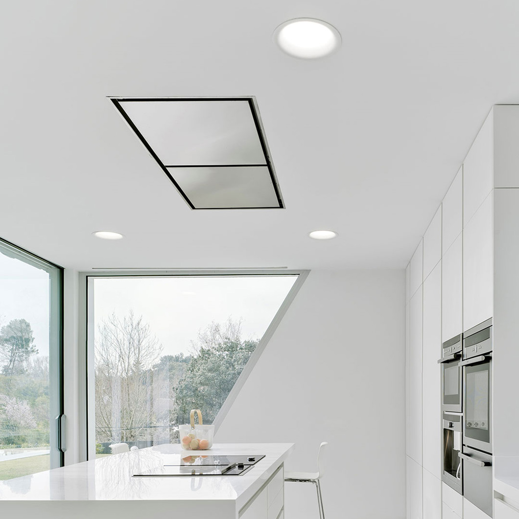 The Drop Recessed Ceiling Light by Arkoslight is designed to resemble a natural skylight, with the white fitting's almost invisible rims creating the illuminating illusion. The minimalist fitting has a 98° beam angle that floods the space with light, concealing the LED light source. Made from aluminium and acrylic glass PMMA, the recessed ceiling light measures 260mm in diameter.