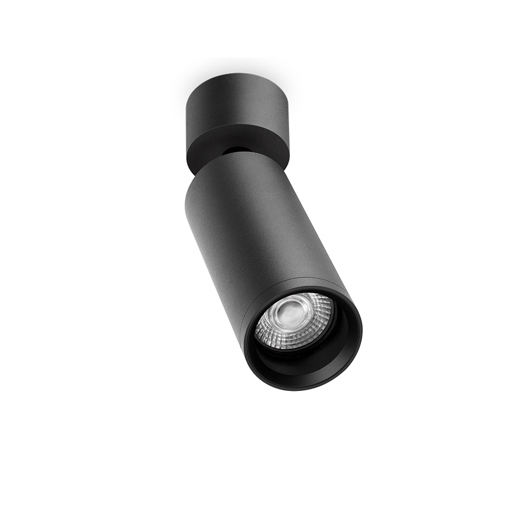 Fit Surface Mounted is a versatile LED spotlight boasting a stylish contemporary aesthetic. Crafted from aluminium, the textured head of the spotlight elegantly contrasts with the black perimeter around the inside of the spotlight, creating a bold visual aesthetic which stands out against a minimalist interior. The versatile spotlight can be rotated 350°, meaning the direction of light can easily be focused on individual objects around a room.