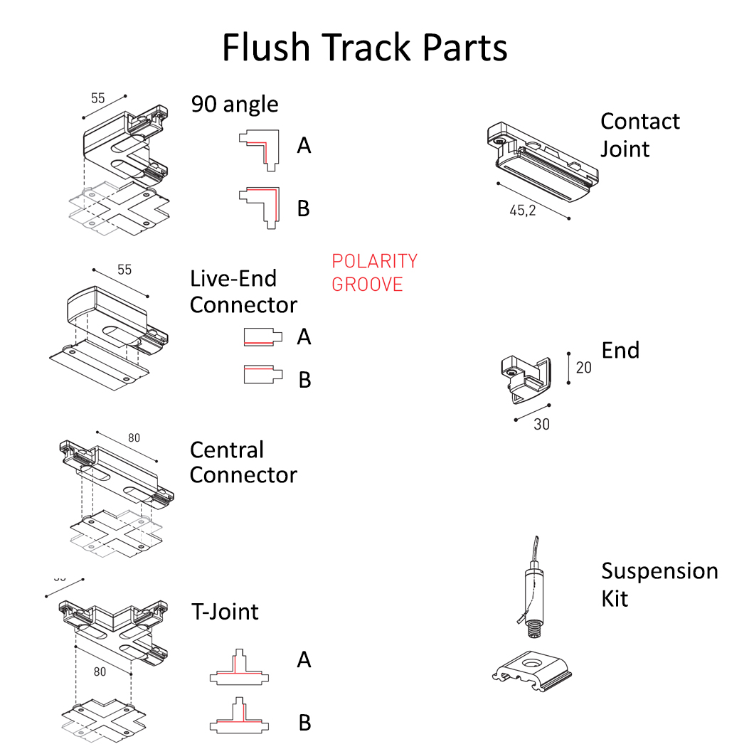 The track and its' accessories are available in classic white or black finishes. 1L track is also available in Flush Mounting and Suspended versions (see related products below).