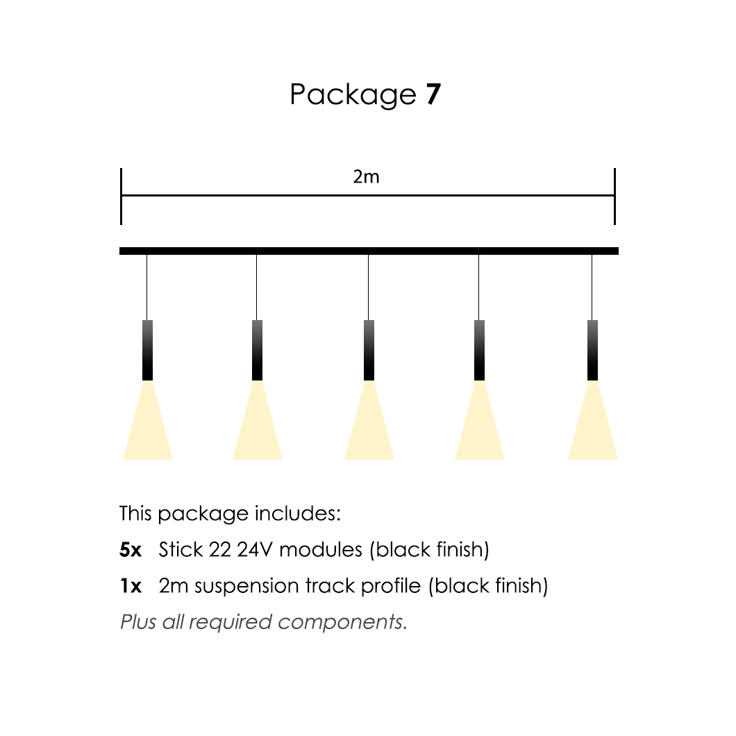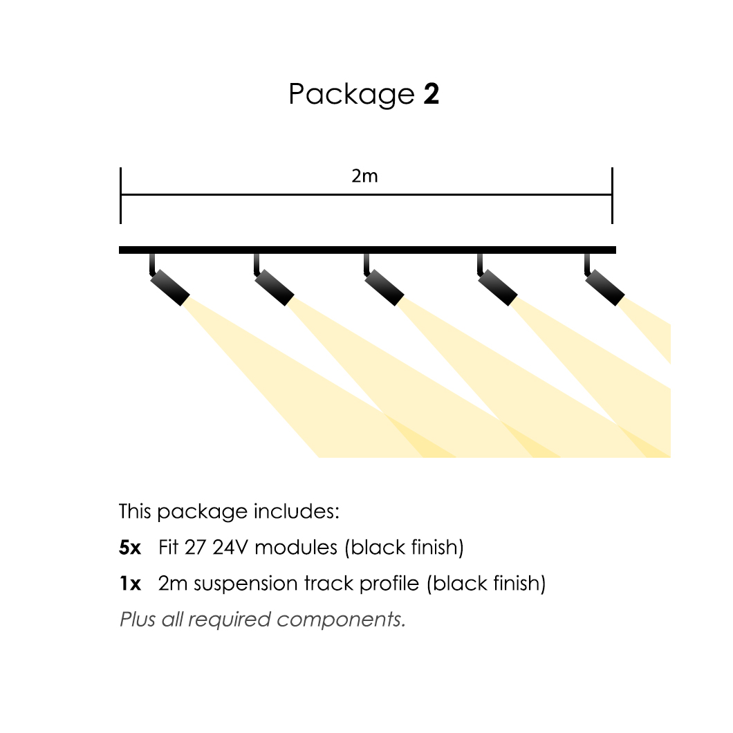 1x 2m suspension track profile initial feed kit (black finish)