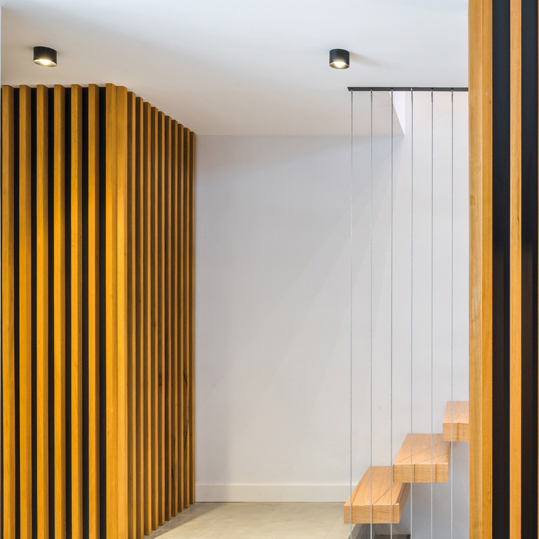 With a minimalist, cylindrical aluminium frame, Puck shows the clear influence behind its name. The simplistic geometrical structure is perfect for installation in any contemporary minimalist interior. Its’ compact form serves as an excellent lighting solution where a discreet ceiling light is needed.