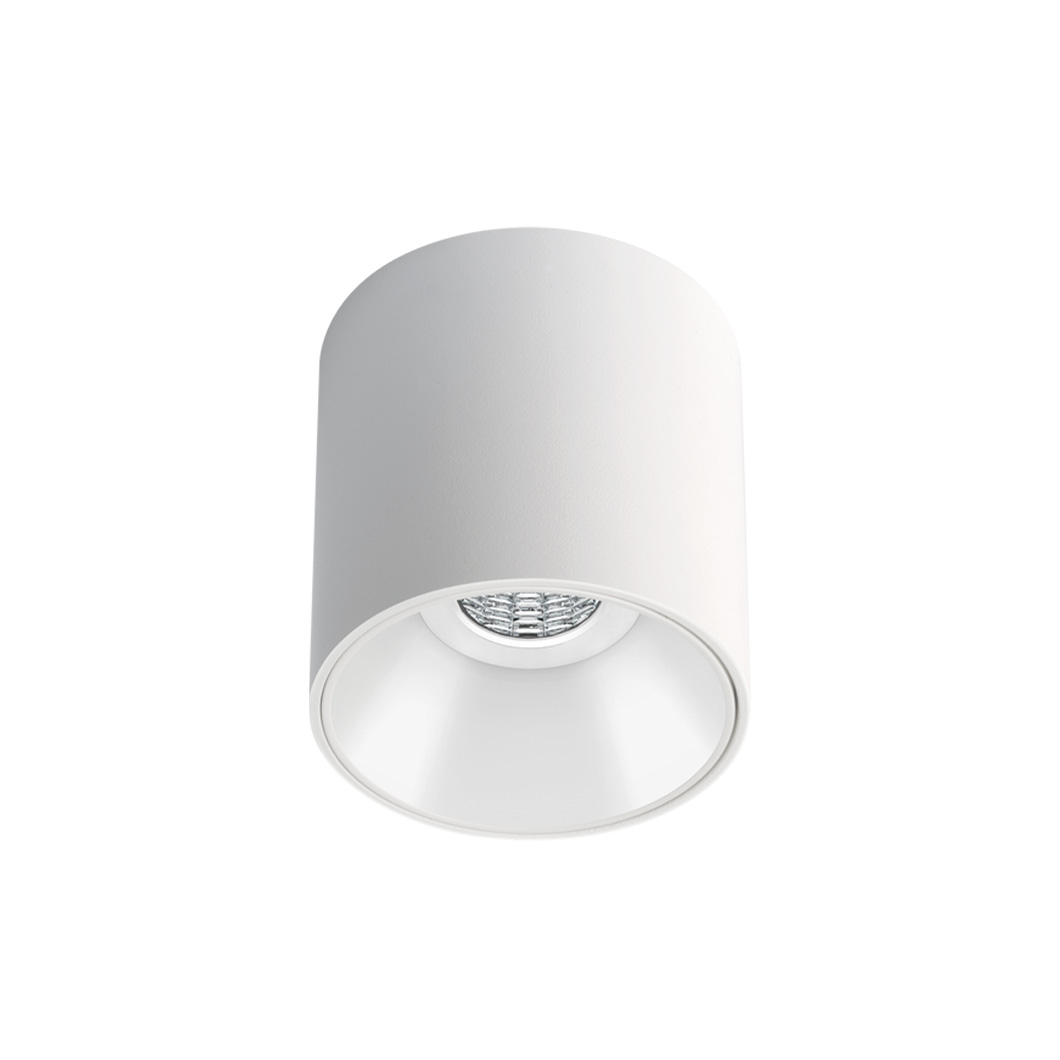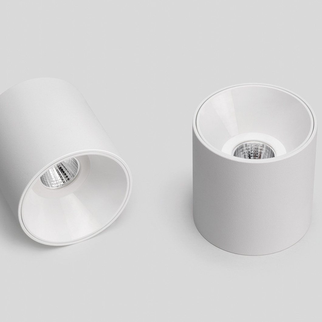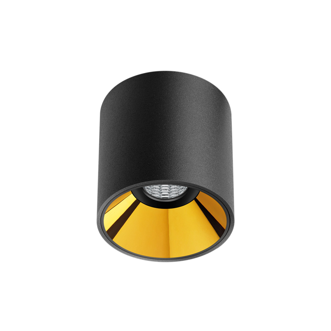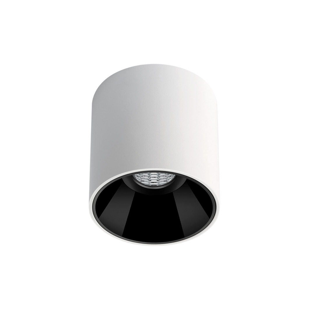 The Shot Light M Surface features an LED light source with a 39° beam angle, available in 4.5W, 6.5W, or 12.4W versions. The surface-mounted ceiling light can be made in 4 different colour temperatures: 2700K, 3000K, 3500K, 4000K. Finally, choose between 4 sleek finishes: all black, white with black interior, all white, or black with gold interior.