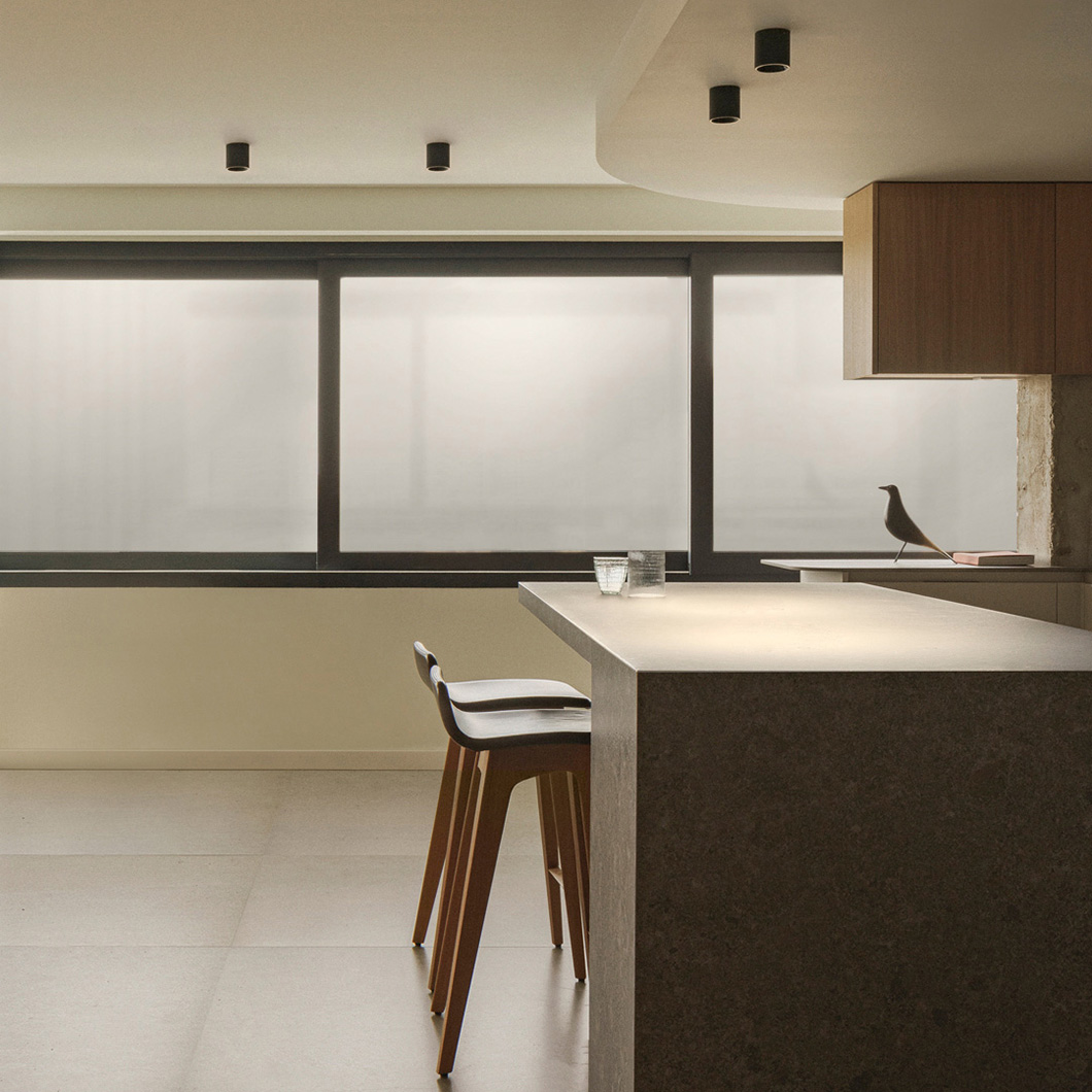 The Shot Light Surface LED Ceiling Light by Arkoslight conceals its light source, using an anti-glare screen to offer maximum visual comfort. The luminaire also features a specially designed micro-reflector that generates a perfectly defined beam of light. The M model has a diameter of 78mm and a height of 80mm, making it a discreet, minimal addition to a modern interior.