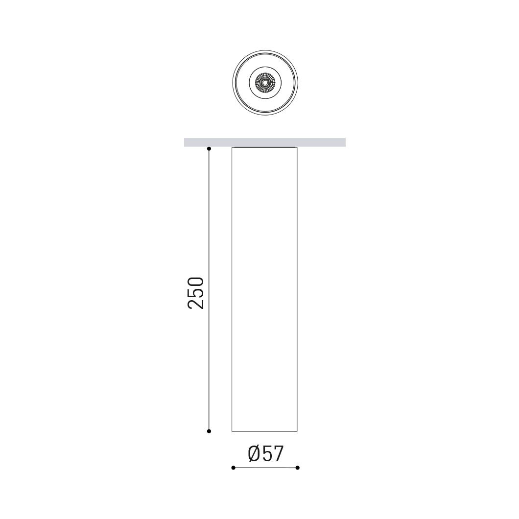 The Shot Light S Surface 25 LED Ceiling Light by Arkoslight conceals its light source, using an anti-glare screen to offer maximum visual comfort. The luminaire also features a specially designed micro-reflector that generates a perfectly defined beam of light for focused illumination. This elongated fitting has a diameter of 57mm and a height of 250mm, a minimal yet effective addition to a modern interior.