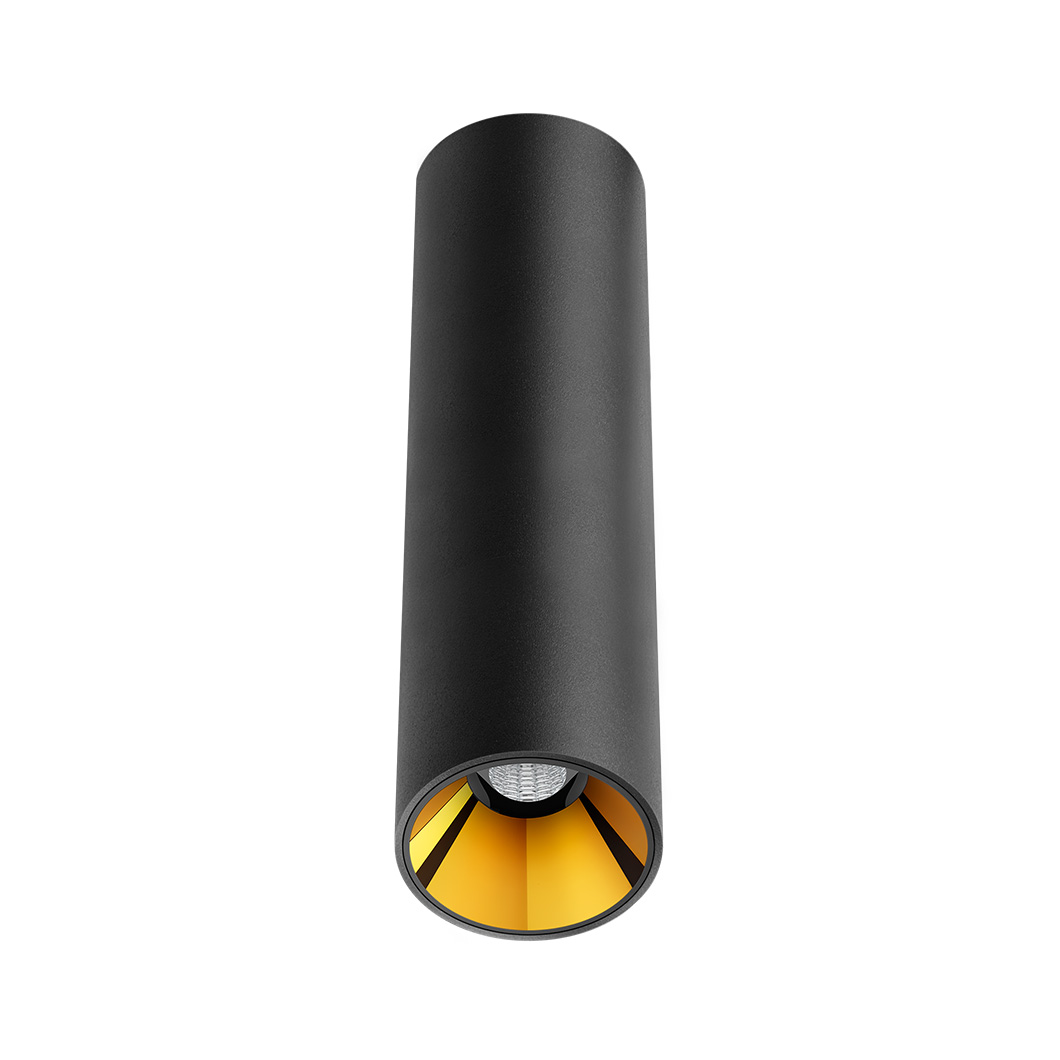 The Shot Light S Surface 25 features a 6W LED light source with either a 23° or 39° beam angle. The surface-mounted ceiling light can be made in 4 different colour temperatures: 2700K, 3000K, 3500K, 4000K. There are 4 finish options: all black, white with black interior, all white, or black with gold interior. Choose between DALI, phase-cut, or push dimming. Driver included.