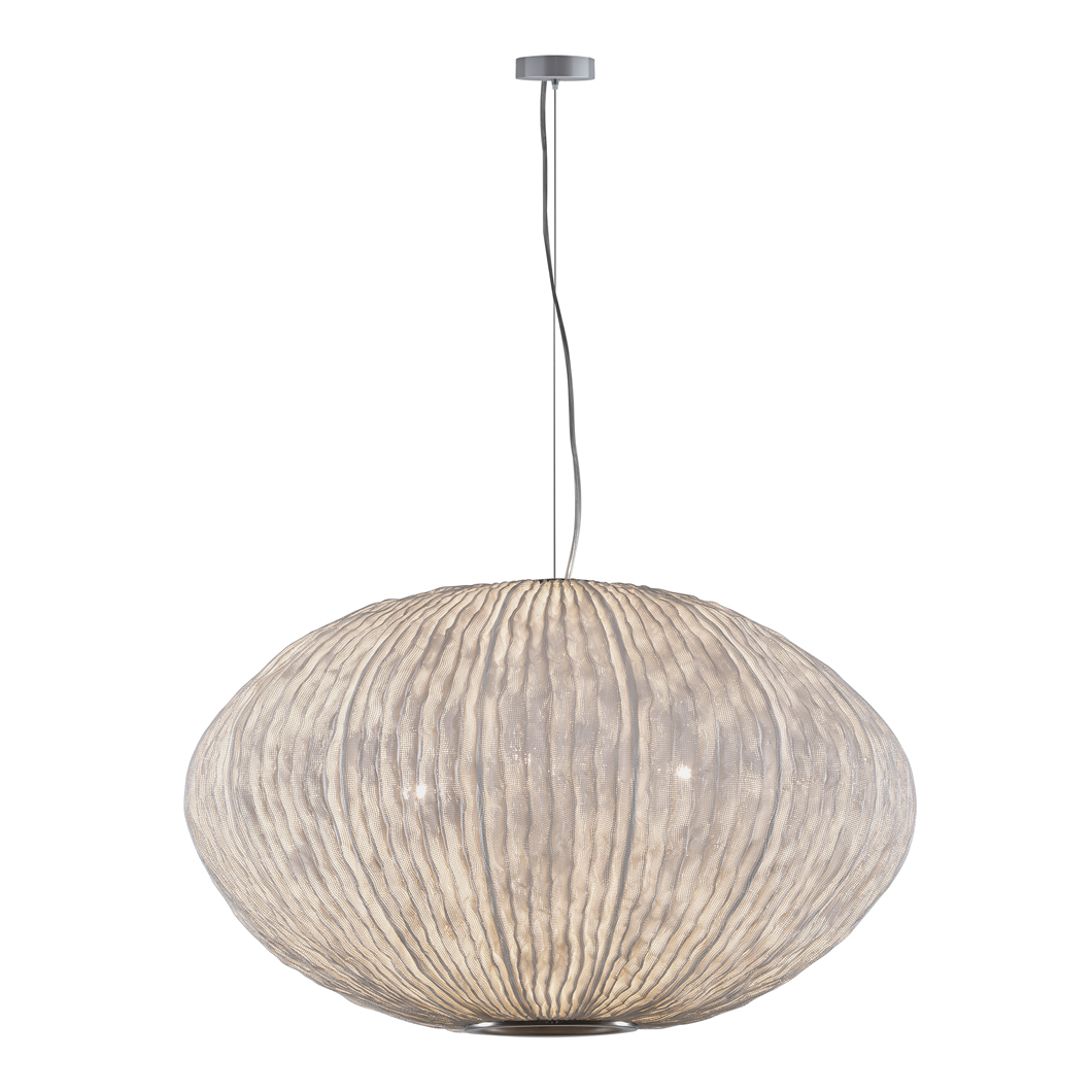 The Arturo Alvarez Coral Seaurchin Large Pendant is part of a collection of chandeliers, called Coral, made from SIMETECH® which is a durable but slightly transparent steel mesh covered in silicone. Influenced by sea life, with many lines surrounding the structure – creating a reflective effect of coral reefs. With 6 different symmetrical designs; Cay, Galaxea, Reef, Sea & Seaurchin (in two sizes) – each model has a distinct style & something unique to offer to a room. Available in white, grey, beige and taupe finishes. Support in stainless steel. Cable in black or transparent. Canopy is steel gloss nickel-plated. Lamp not included, see Datasheet link in the Downloads tab for a list of compatible lamps.