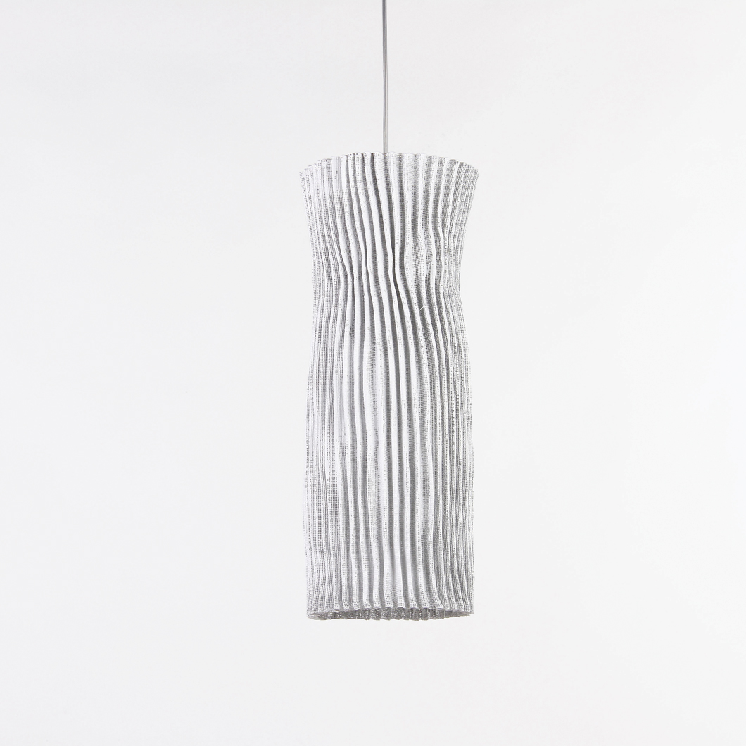 Inspired by the primitive goddess, mother earth, The Arturo Alvarez Gea Pendant embraces an organic and feminine sculptural form. Enhanced by the creased covering of SIMETECH® that clings to the curves of the lamp, Gea offers a soft blanket of light that spreads across the entire piece. Comes with a zip for ease with cleaning and maintaining the SIMTECH. Available as E27 or LED version. Cable available in black or transparent. Lamp not included in E27 version, see Datasheet link in the Downloads tab for a list of compatible lamps.