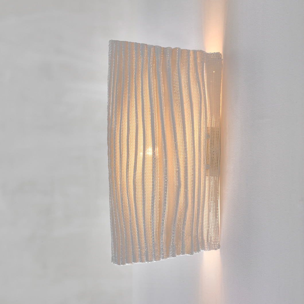 Inspired by the primitive goddess, mother earth, The Arturo Alvarez Gea Wall Light embraces an organic and feminine sculptural form. Enhanced by the creased covering of SIMETECH® that clings to the curves of the lamp, Gea offers a soft blanket of light that spreads across the entire piece. Comes with a zip for ease with cleaning and maintaining the SIMTECH. Available in white, grey, beige or taupe. Support in stainless steel. Lamp not included, see Datasheet link in the Downloads tab for a list of compatible lamps.