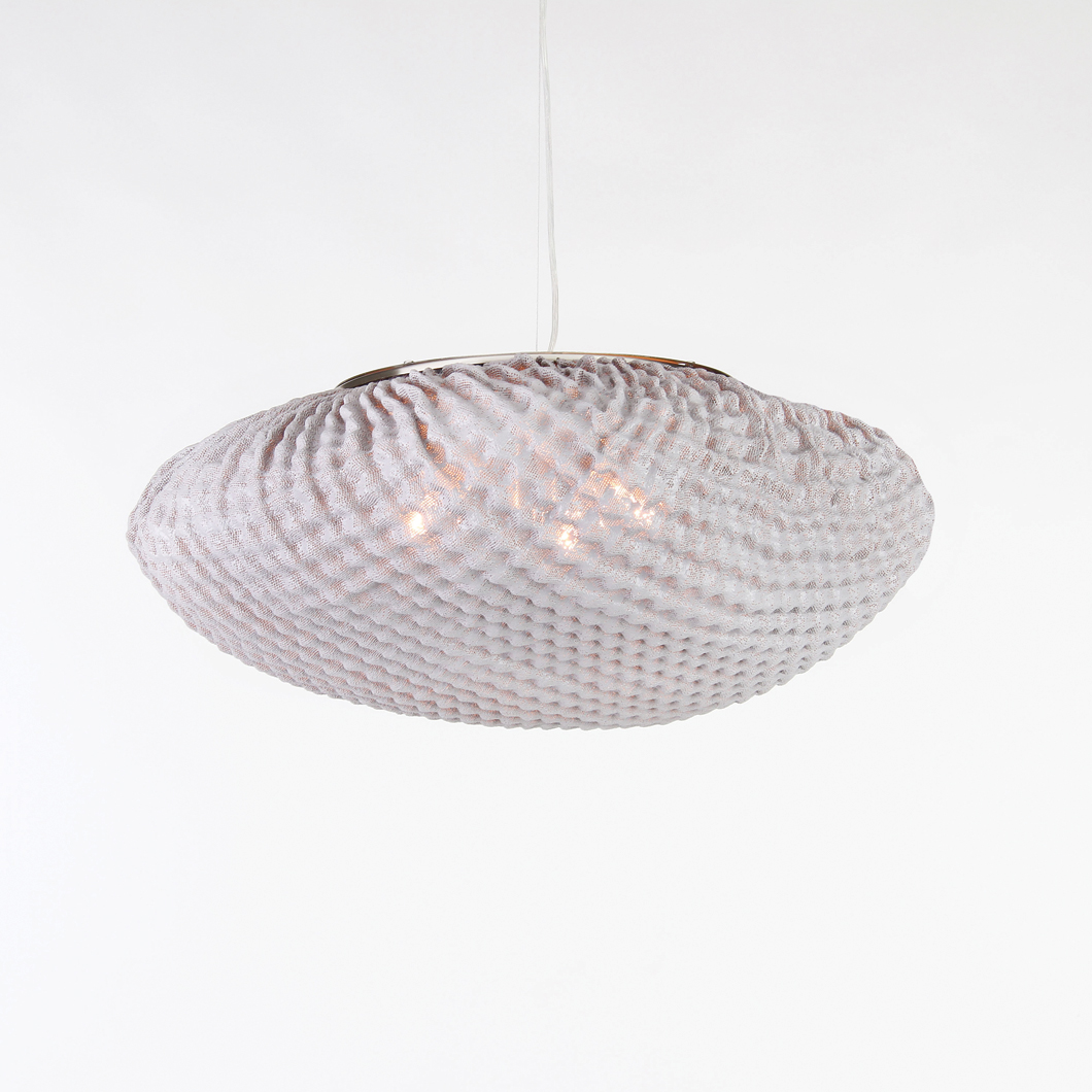 The Arturo Alvarez Pendant is a round design which has copious amounts of circles embossed into the structure of SIMETECH® material, giving it skin-like texture. The overall design is evocative to the shell of a carapace – mostly consistent with infrequent irregularities. The SIMETECH® material acts as a diffuser which softens the light. However, if looked at from close-up, you can see microscopic hills and valleys which play with light and shadow to become atmospheric. Available in 3 sizes. Finishes in white, grey, beige and taupe. Support in stainless steel. Cable available in black or transparent. Lamp not included for Non-LED versions, see Datasheet link in the Downloads tab for a list of compatible lamps.