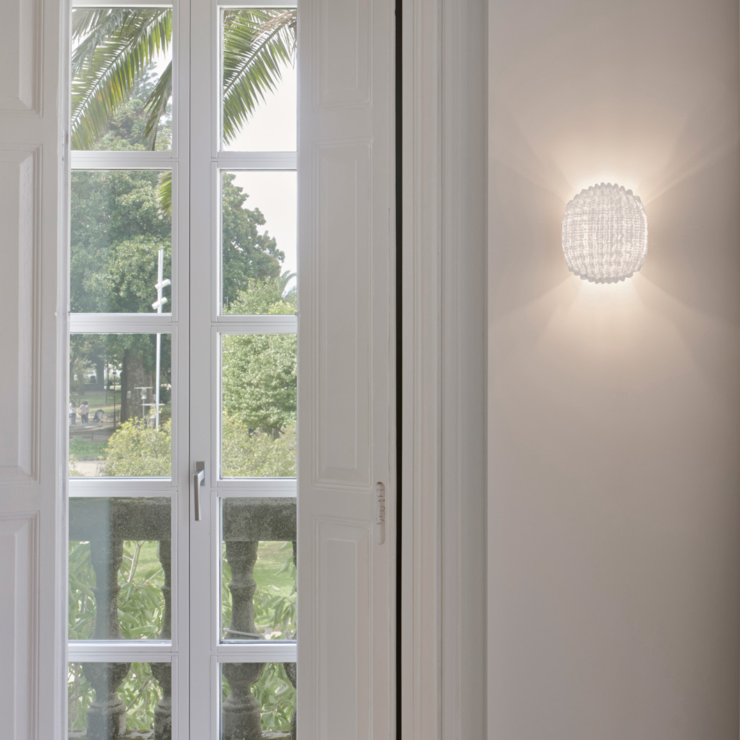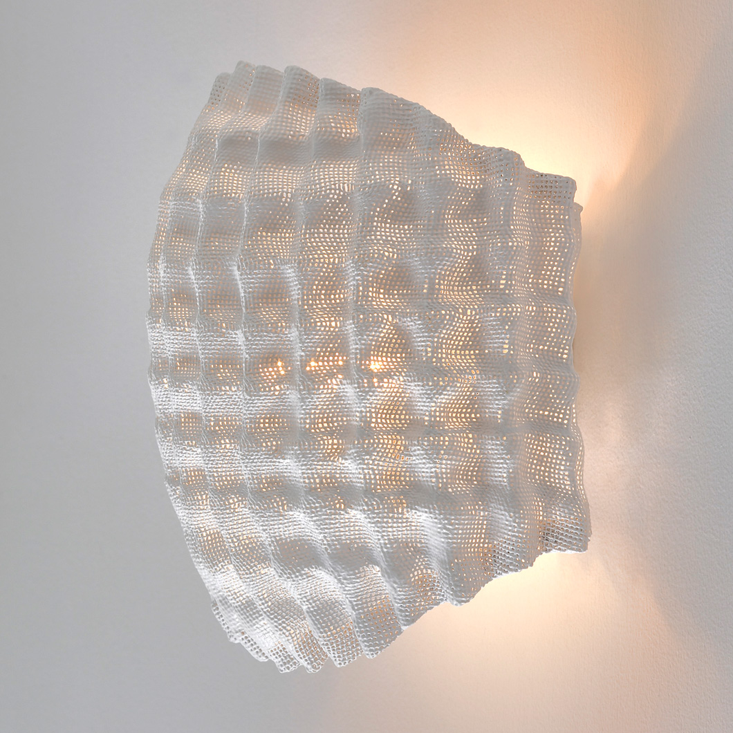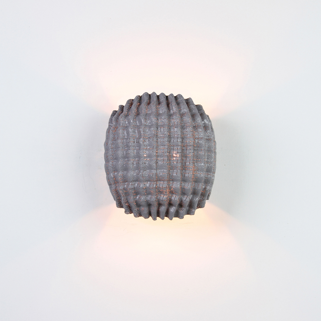 The Arturo Alvarez Tati Wall Light is a round design which has copious amounts of circles embossed into the structure of SIMETECH® material, giving it skin-like texture. The overall design is evocative to the shell of a carapace – mostly consistent with infrequent irregularities. The SIMETECH® material acts as a diffuser which softens the light. However, if looked at from close-up, you can see microscopic hills and valleys which play with light and shadow to become atmospheric. Available in 3 sizes. Finishes in white, grey, beige and taupe. Support in stainless steel. Cable available in black or transparent. Lamp not included, see Datasheet link in the Downloads tab for a list of compatible lamps.