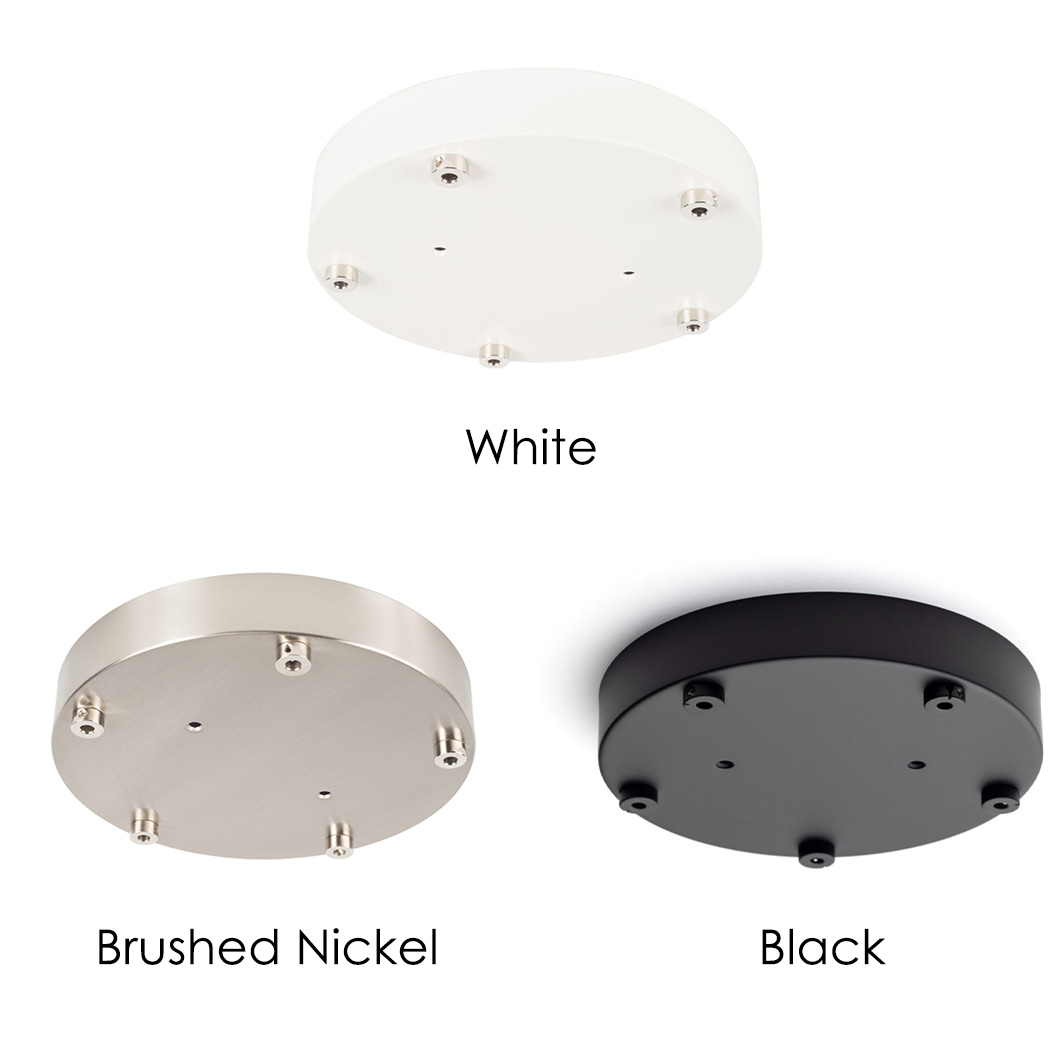 The 5-cluster canopy can be finished in white, brushed nickel, or black.