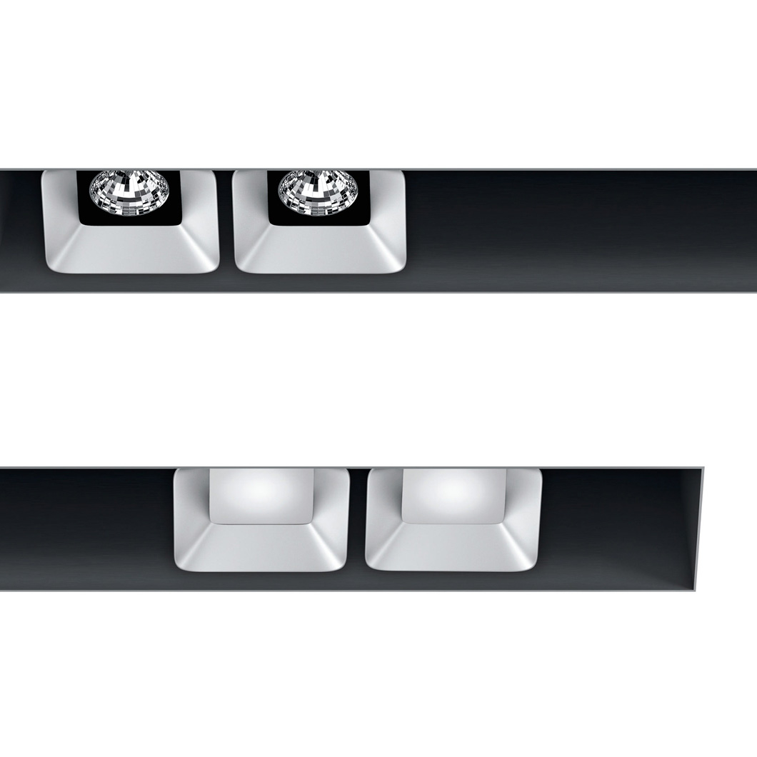 An adjustable high-performance fixed spotlight for the Opus recessed trimless track system, the Opus Lux by Apure boasts the very latest energy efficient LED technology wrapped in a sleek minimal design. Recessed within the Opus track system and used in conjunction with the other Opus luminaires, Opus Lux is a non-directional spotlight that omits a warm dimmable light. This fitting is ideal for providing more ambient lighting. The interchangeable LED reflectors and louvers allow the spotlight to be styled to fit almost any modern interior scheme.