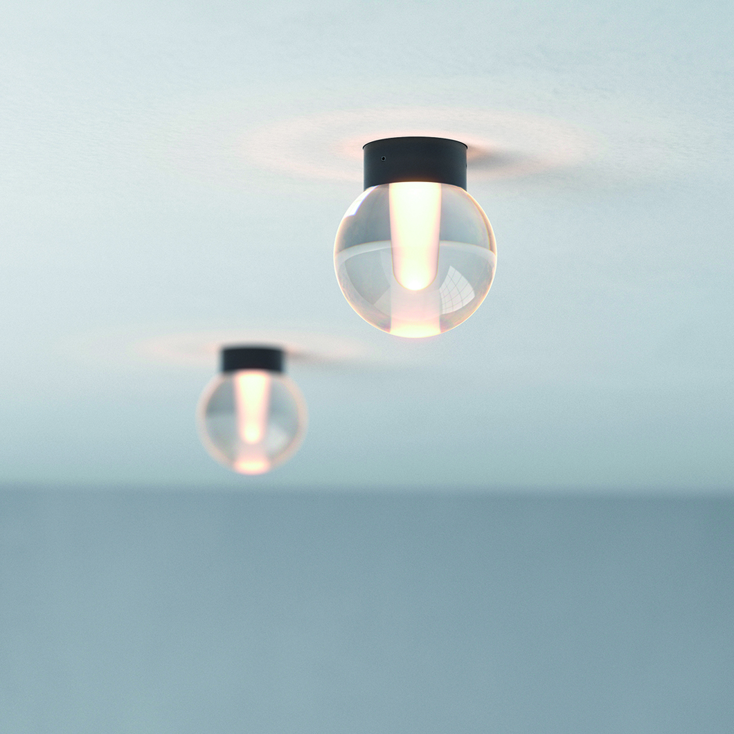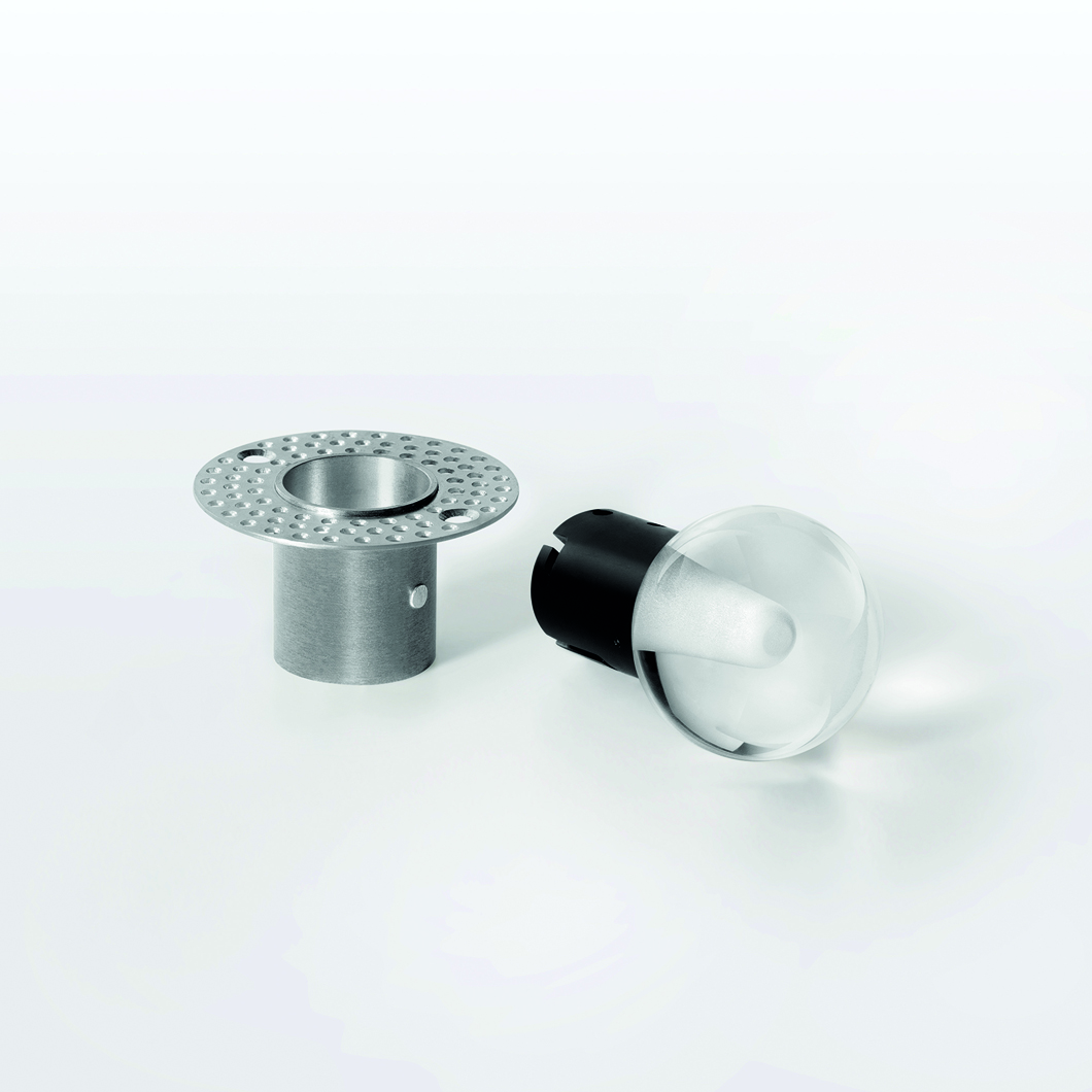 The Alaska Trimless Recessed Ceiling light from Arkoslight is an LED-updated showcase of the traditional incandescent lightbulb, made with an IP44 rating for use in wet zones such as bathrooms. Alaska is capable as the main source of light, its power is distributed across a near-perfect sphere made of optical glass, setting the mood of your living room in the evening. This fitting can be installed either showing some of the cylindrical black base or recessing fully for a completely seamless finish. The design and construction process has been thoroughly developed, its contemporary style makes Alaska, even when turned off, an integral part of every interior and exterior living space. 2 sizes available, the medium has a 50mm diameter and requires a remote driver whilst the large version has a 100mm diameter glass sphere and includes a driver (both dimmable and non-dimming options available). Plaster in frame included. Colour temperatures in 2700K and 3000K (4000K on request).