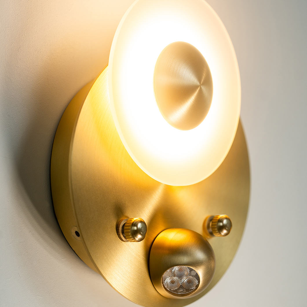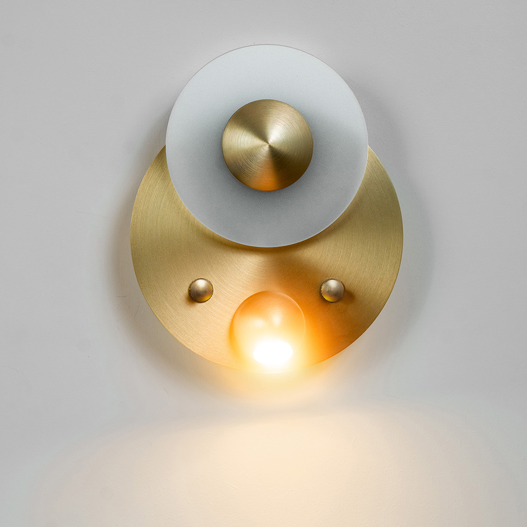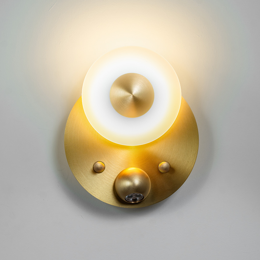 Choose between four stylish satin finishes: brass, copper, nickel, or graphite. Polished versions of these finishes are available on request - contact us for more details. Finish 1 refers to the smaller, upper disc and the spotlight element, and finish 2 refers to the large, base disc. Choose the same finish for a more minimalist look, or opt for two different swatches to enhance the decorative nature of the piece. Watch the short video below to learn how to correctly install the wall light.