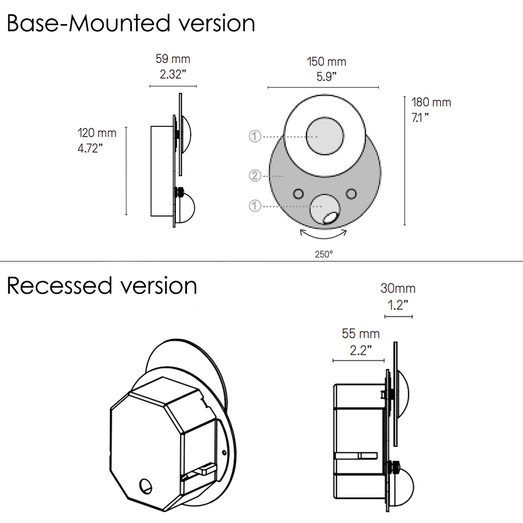 Recessed version: 55mm recessed depth