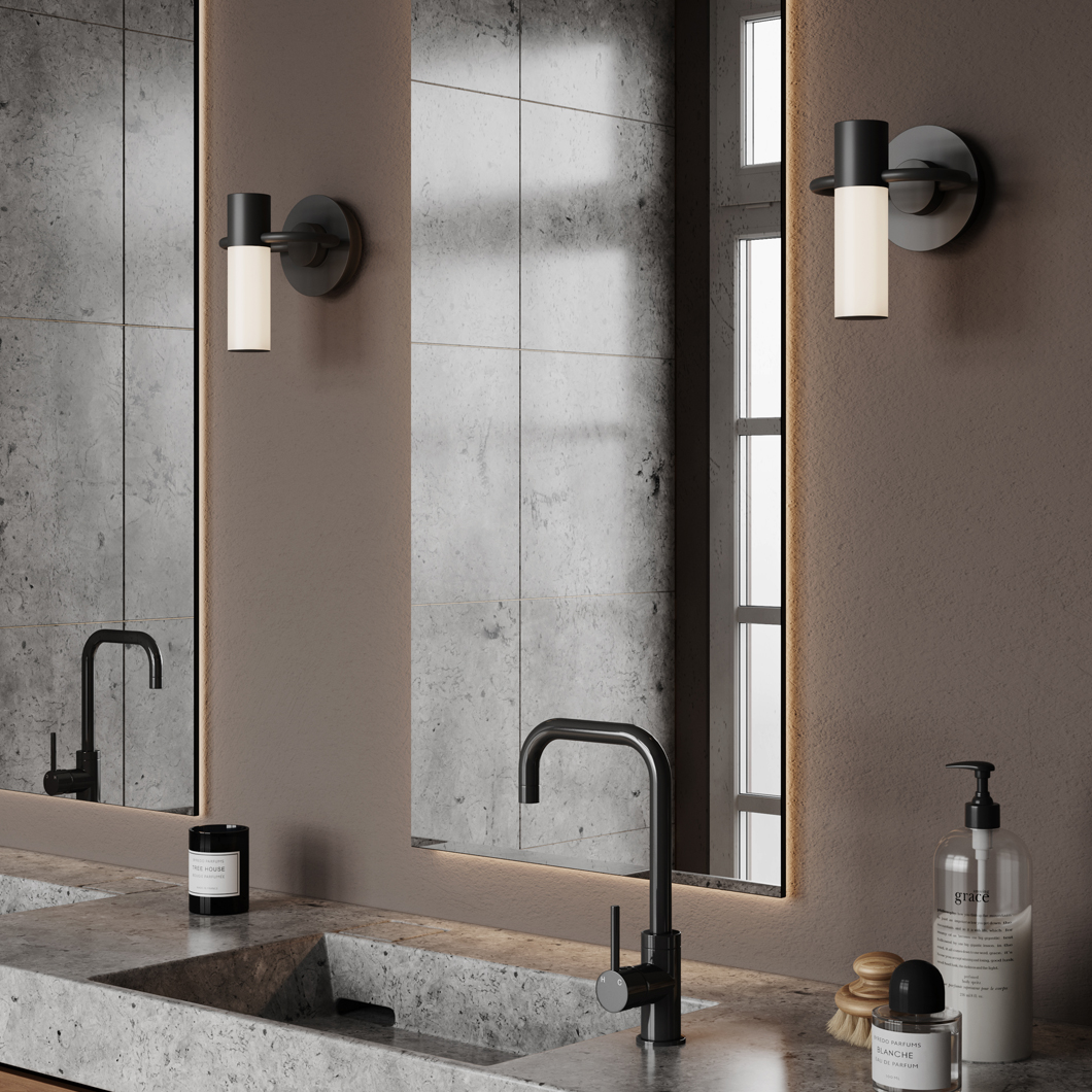 Storm IP44 is a sharp and clearly defined wall light, with a splash resistant form which designed for use in bathrooms. This wall light features a rounded bass frame and wall mount, which meets at the downward-facing tubular diffuser. Storm are a collection of lights with a design based on an artistic representation of a storm, resulting in luminaires which are fascinating in their minimalist forms. The cylindrical white polycarbonate diffuser is excellent at covering the surrounding area in a full 360° warm white LED glow, perfectly creating a cosy and relaxing atmosphere for your home. This wall light has an IP rating of 44. The IP collection from CVL are a series of wall lights designed for bathrooms. With their splash-proof exterior, these luminaires can be used in bathroom zones two and three.