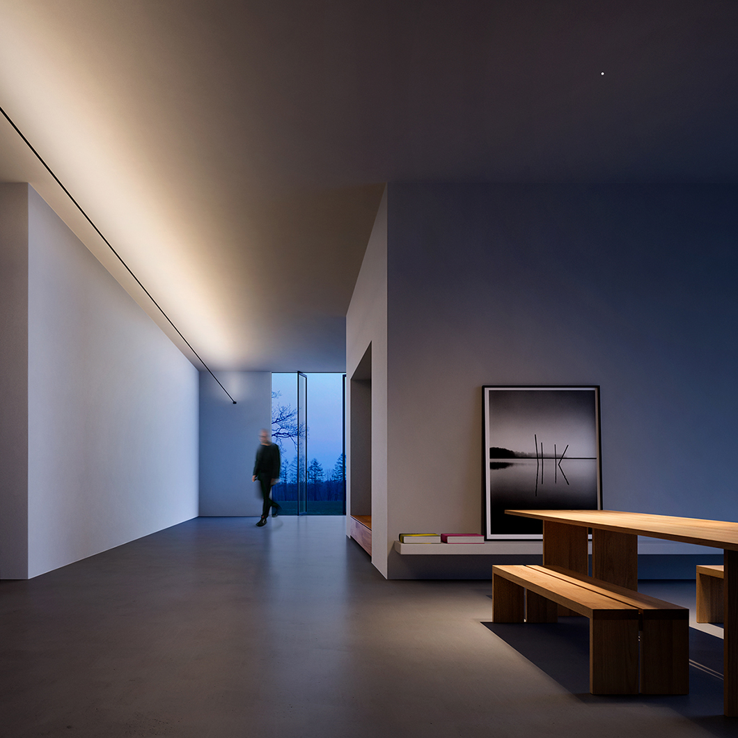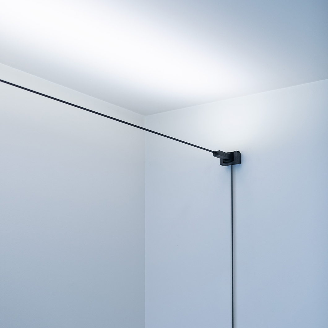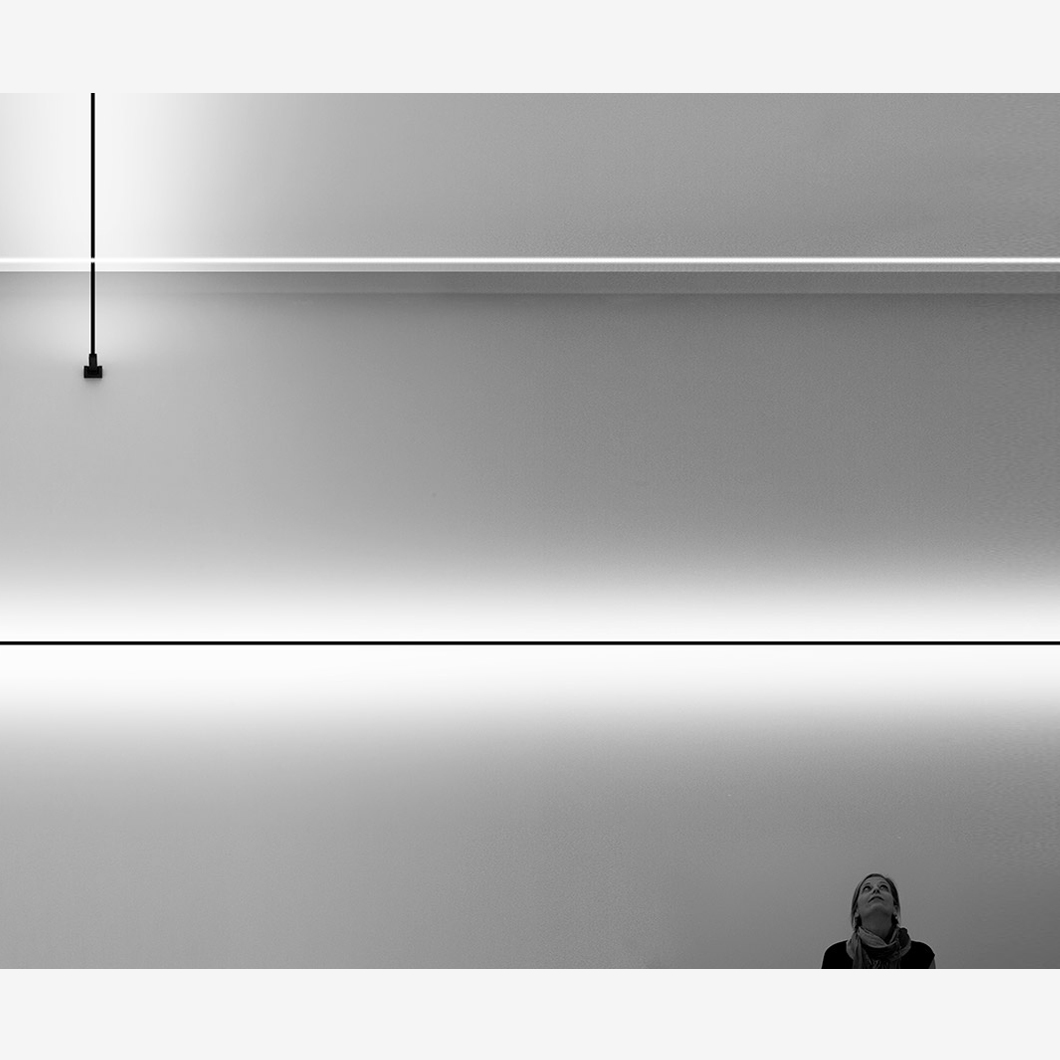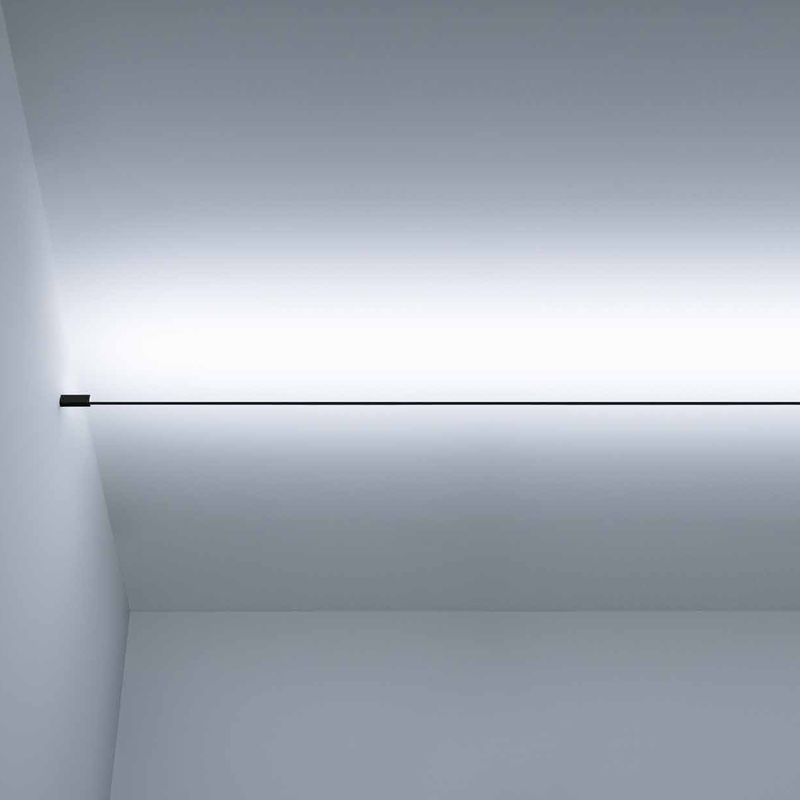 Infinito is an indirect wall and ceiling light, constructed from stainless steel and finished with a matt black coating. When installed from wall to wall - or ceiling to floor, Infinito becomes almost invisible, leaving only a trace. Defined by its wide line of LED glow, this wall and ceiling light is subtle in its ultra-thin form. This eliminates the need for a bulky and obtrusive structure, making this luminaire perfect for minimalist-themed interior spaces. Stretch Infinito across the room like a luminescent thread of silk. The integrated LED strip produces a soft diffused glow of light across the wall or ceiling.