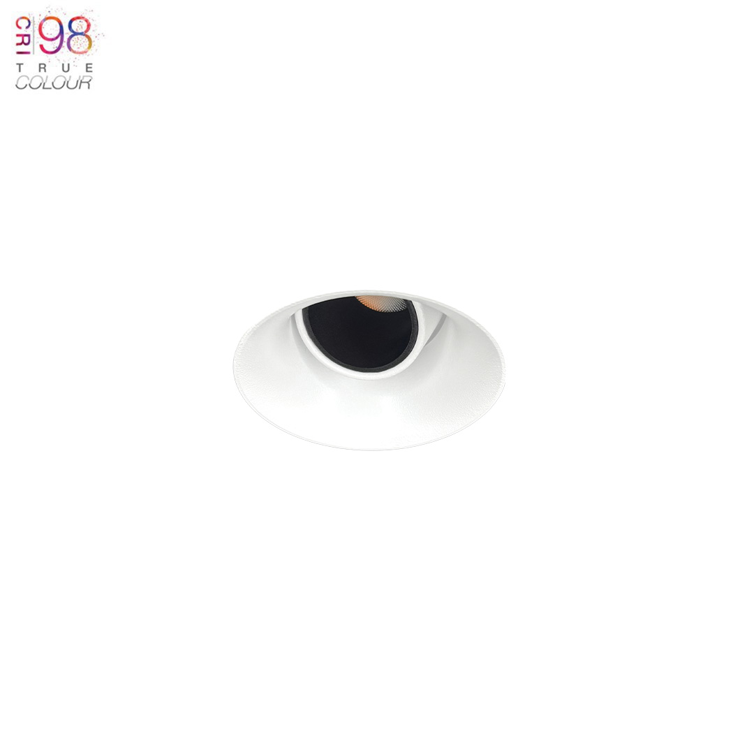 Nebo is a trimless, plaster-in downlight that recesses into the ceiling. The versatile fitting has a medium 36° beam angle, offering a diffused spread of light. Nebo's IP65 rating, paired with an adjustable 25° tilt, makes it an ideal directional downlight for installation in bathroom zone 1 as well as dry areas. Featuring our True Colour CRI98 LED technology, Nebo has exceptional colour rendering accuracy.