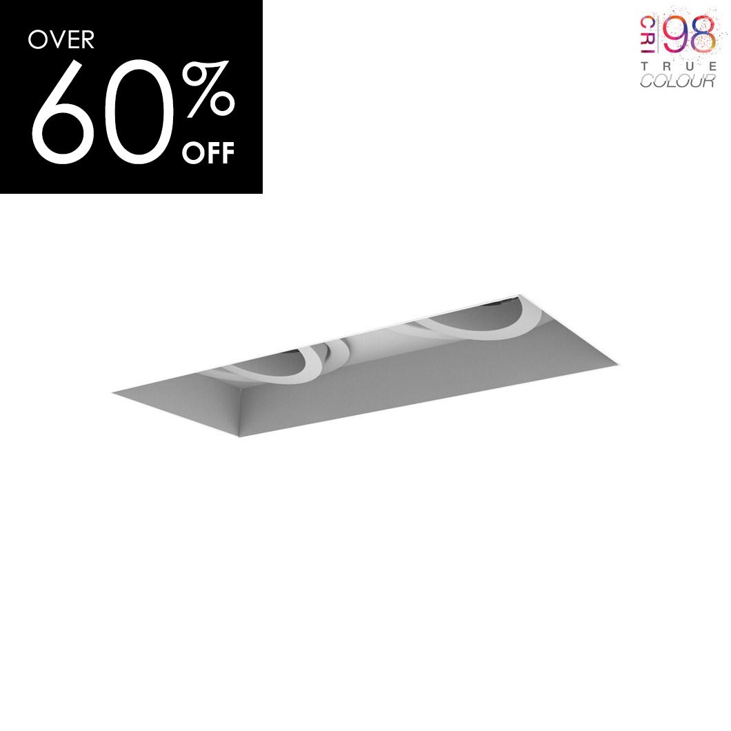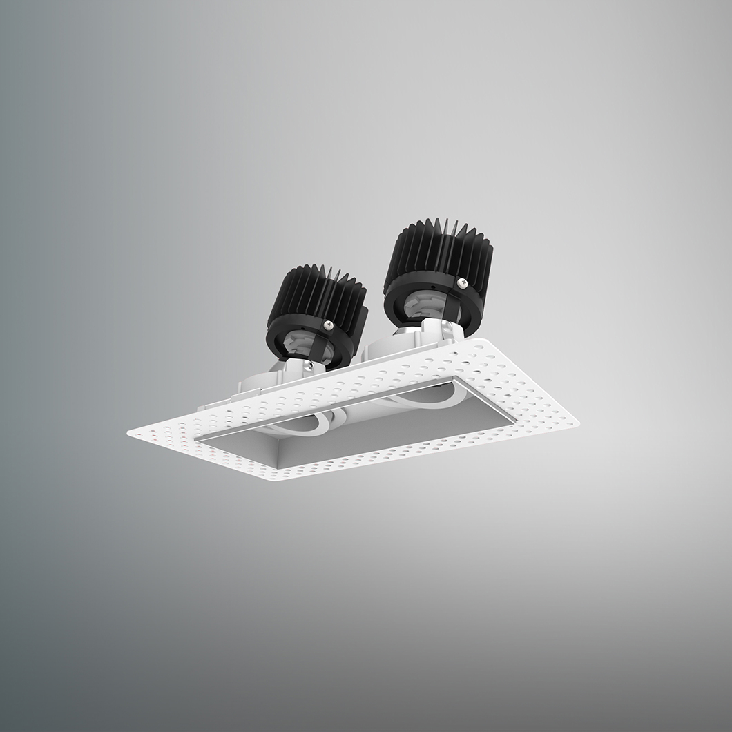 Eiger 2 LED square adjustable recessed plaster in trimless downlight has a dual lumen output of over 2x 1400lm - making it perfect for installation in residential projects. Both modules include a True Colour CRI 98 LED chip which reflects dynamic colours from artwork and bright furniture more accurately than standard downlights. The twin light engines are removable through a simple twist mechanism, which allows for easy maintenance. Available with a beam angle of 15º or 36º. Die-cast aluminium luminaire with steel housing. Adjustable tilt of 24º and 355º rotation. Heat sink in forged aluminium for optimum heat dissipation. Reflector in plastic PC. In white or black. Our downlights are fire rated as standard, and have lasted over 60 minutes in independent tests by Cambridge Fire Research.