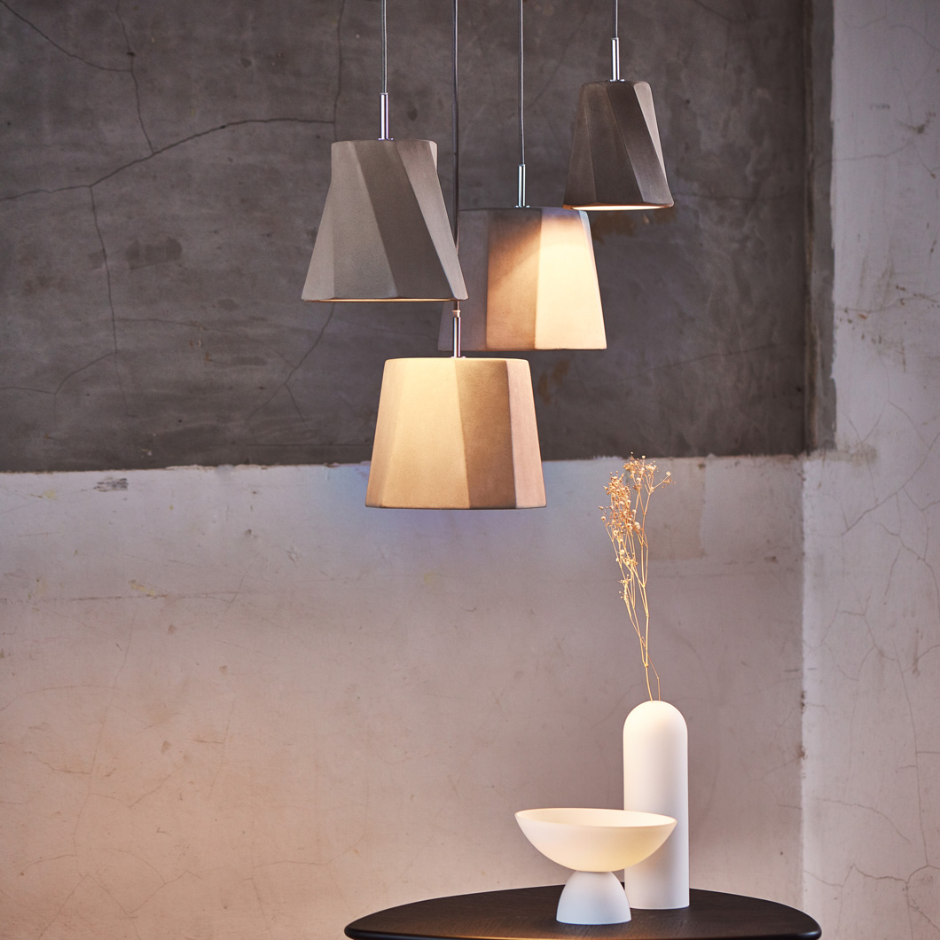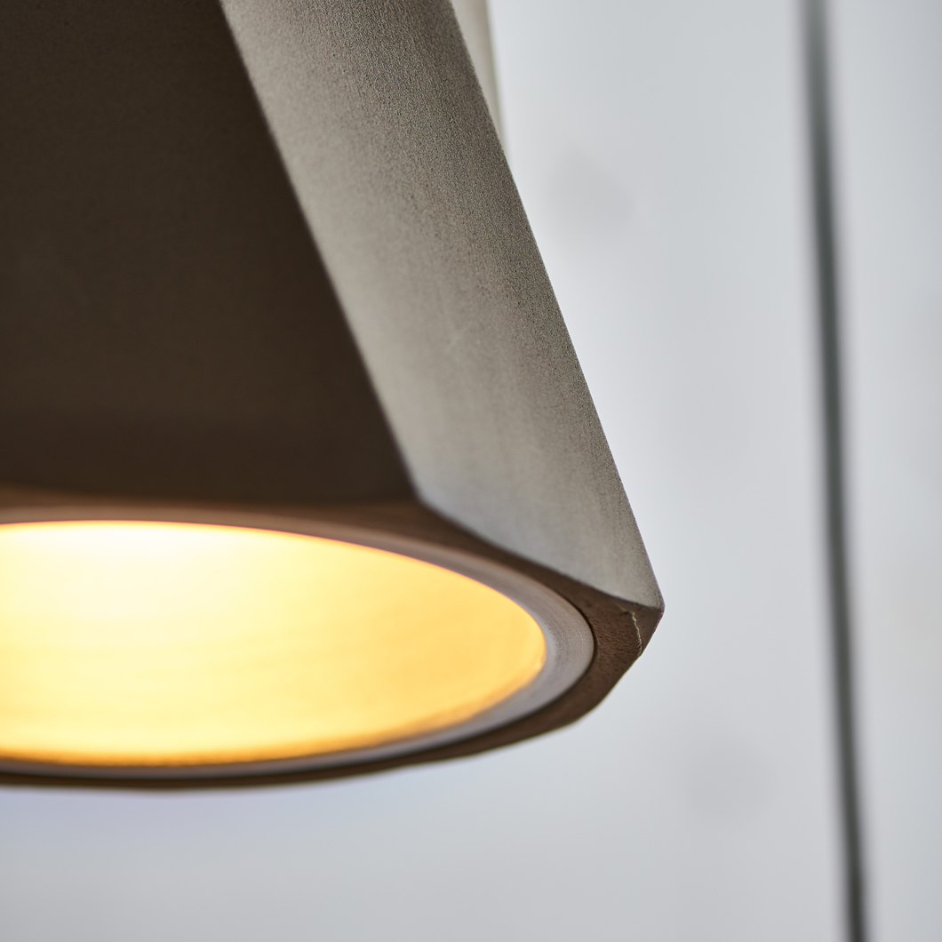 The Seed Design Castle Swing Concrete Pendant is heavily influenced by the movement of a woman’s dress when dancing in a spinning motion. The swirling design is crafted perfectly with refined lines that scream sophistication and give the concrete material a lighter appearance, evoking song and dance again. Shade constructed from concrete, equipped with a silver inner reflector for a reflective shiny glow of light. In our professional opinion, Castle Swing fits in perfectly when hanging above a kitchen island, either as a singular luminaire or as a cluster. The metal element, at the top of the shade, is finished in chrome. Textile cable in grey. Canopy in concrete. Lamp not included.