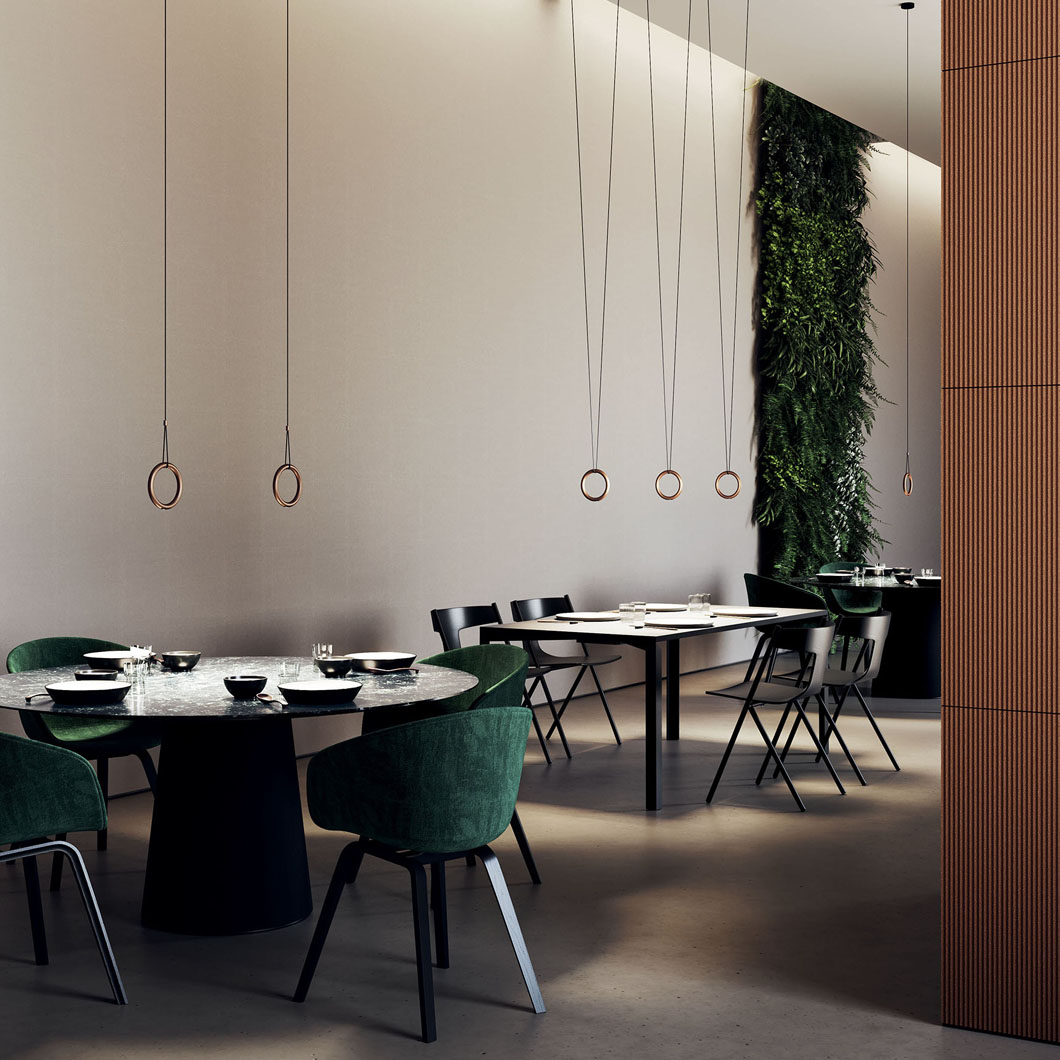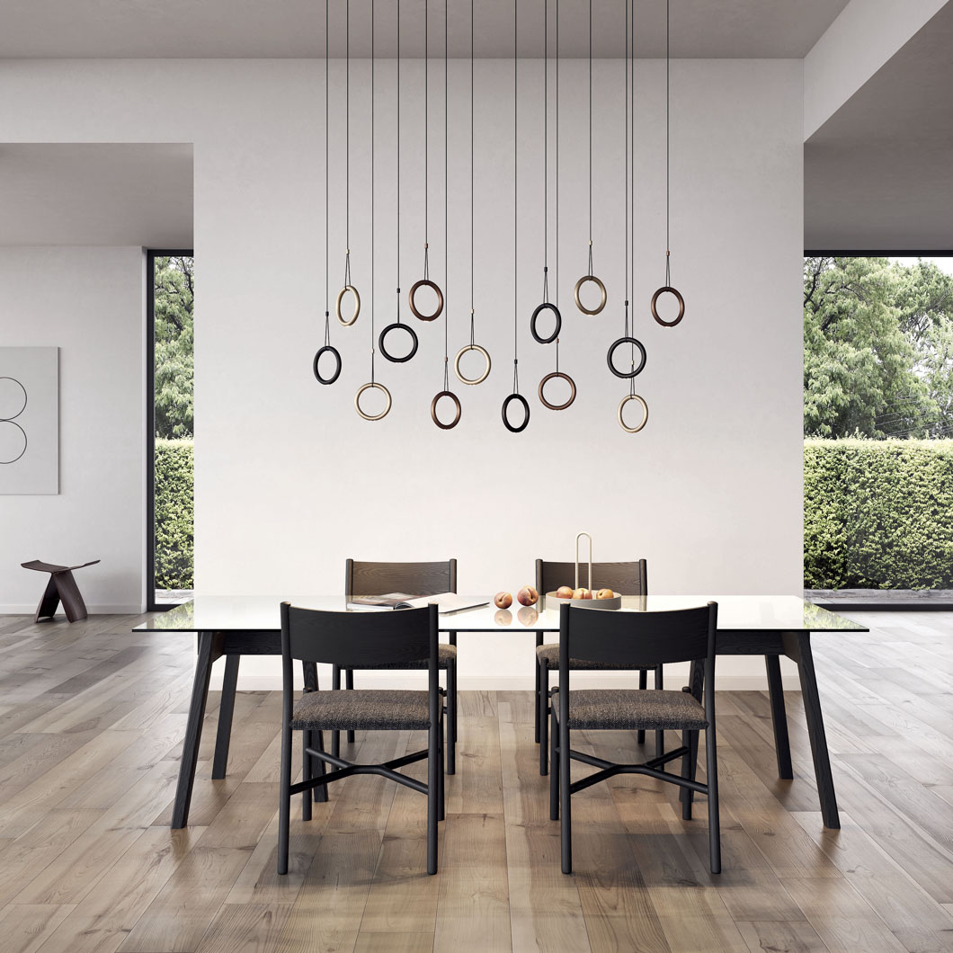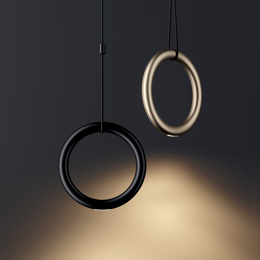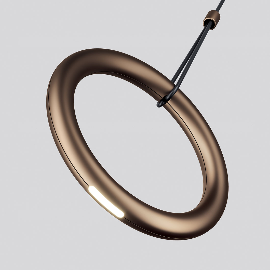 The Ivy IVY I variation is a single drop pendant lamp with a single cable supporting the ring, which can be used on its own or in mutli-drop compositions on Lodes’ selection of canopies.