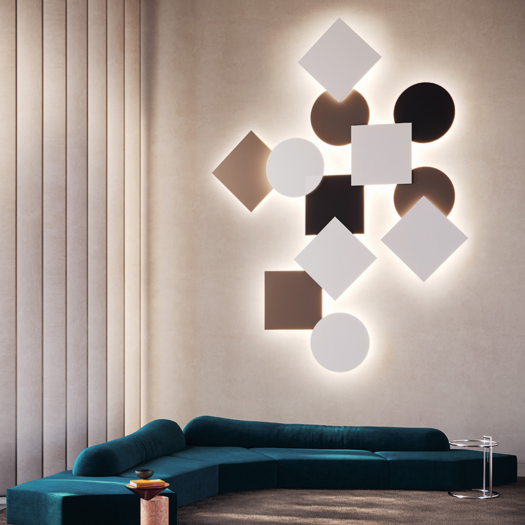 Puzzle Mega is available as a collection of three large geometric shapes which elegantly illuminate the ceiling or wall with soft, sophisticated light. As with the rest of the Puzzle family, light becomes the main aspect of living spaces, creating soft and geometric plays of light. When turned off, the lights instead blend in with the surrounding décor, thanks to the minimalistic, clear cut design of Puzzle Mega. Renoir by Infinity is the elegant diffuser finish available for the Puzzle Mega, made from luxurious porcelain stoneware and perfect as an eye-catching feature for any interior. On the other hand, the matte white diffuser finish matches the simplistic geometric form, ideal for a minimalist aesthetic.