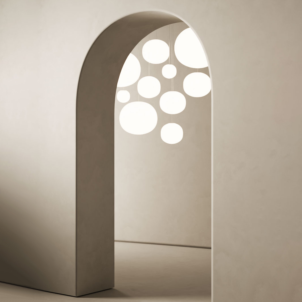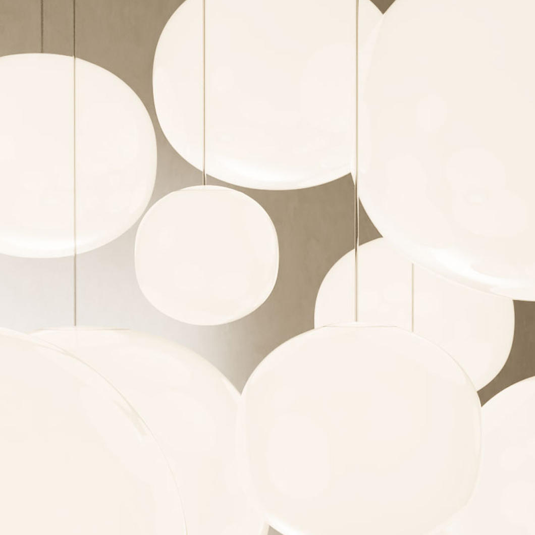 Volum by Lodes is a family of pendants, designed specifically to be assembled in a cluster form of multiple droplets. Emitting light 360 degrees in a uniform fashion, the glass globes provide general lighting in a calm and sophisticated manner whilst celebrating the art of glass-making when turned off. Viewpoint doesn’t matter when looking at Volum, the rounded shape looks astounding from any position. Available in 3 shade sizes, choose a quantity and combination from the selection and pair it with a canopy (not included) for your unique composition to best suit your space.