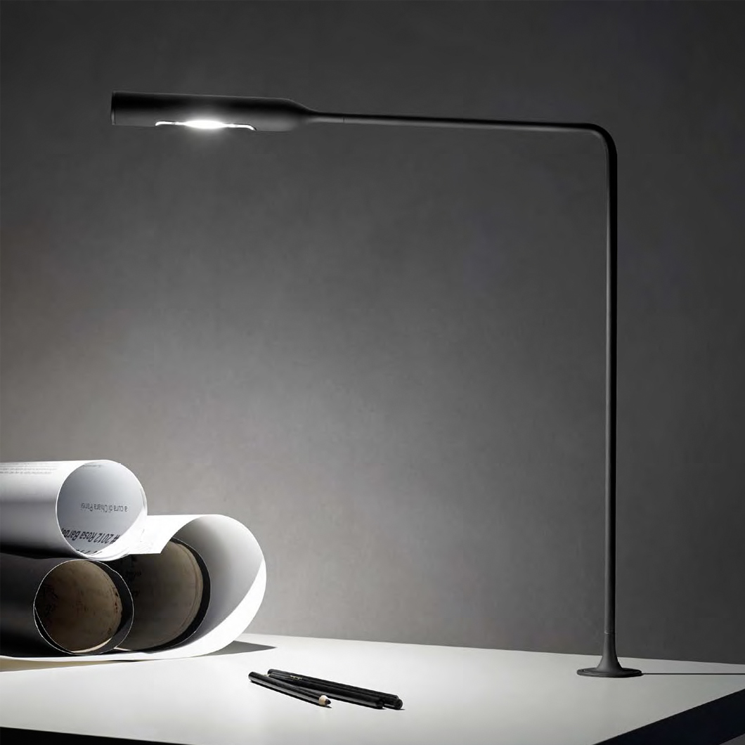 The essence of light - the contemporary Lumina Flo LED Desk Lamp with grommet fixing is minimalist yet elegant, geometric yet harmonious. An initial collaboration between Lumina and Foster + Partners: the result is Italian design at it's finest. Utilising advanced energy efficient dimmable LED technology housed in a minimal yet functional profile - the cold-formed head rotates by 300°, the slender aluminium arm pivots on the grommet base by 120°.