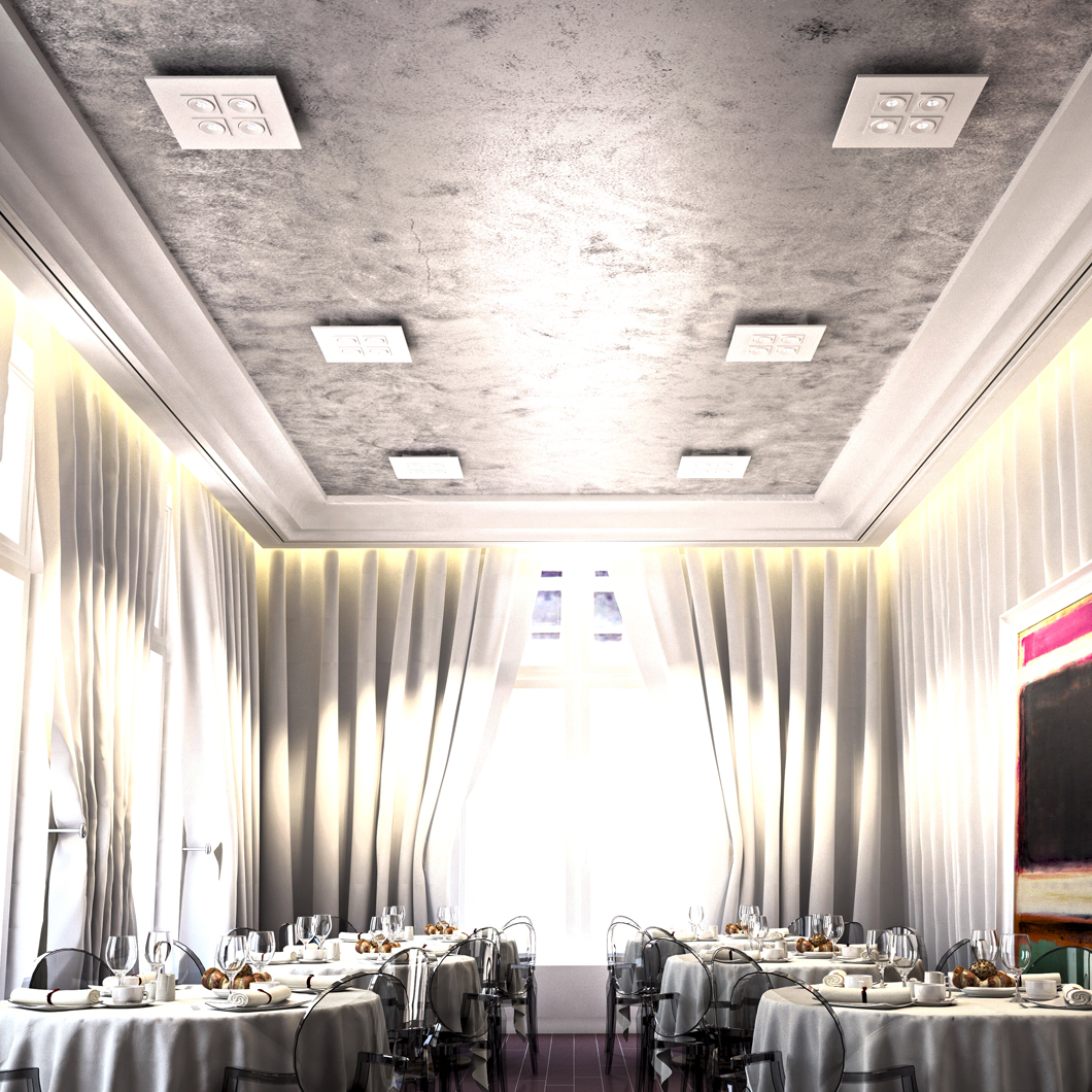 Milan Iluminacion Marc Quadruple LED ceiling light, rotatable by 350º and adjustable by 30º. Finished in white lacquer (3368).