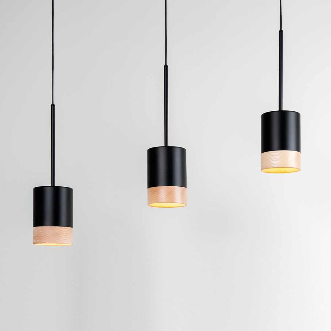 Minimalist in nature, the tubular design of the Third pendant lamp (6817) by Milan Iluminacion is softened by the ash ring which diffuses the light with a soft amber glow. Taking it's name from the three distinct components that make up it's form, the Third suspension light offers a focused spot distribution of light. The contemporary combination of steel in matt black lacquer with the organic finish of ash means that the Milan Iluminacion Third is perfect for an understated modern interior scheme, especially when installed as a row of three subtle yet stylish pendant lights over a kitchen island or dining table.