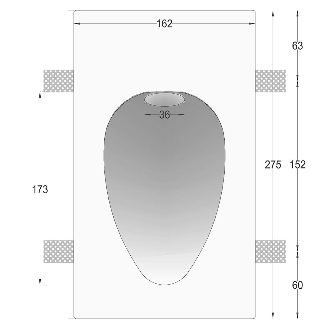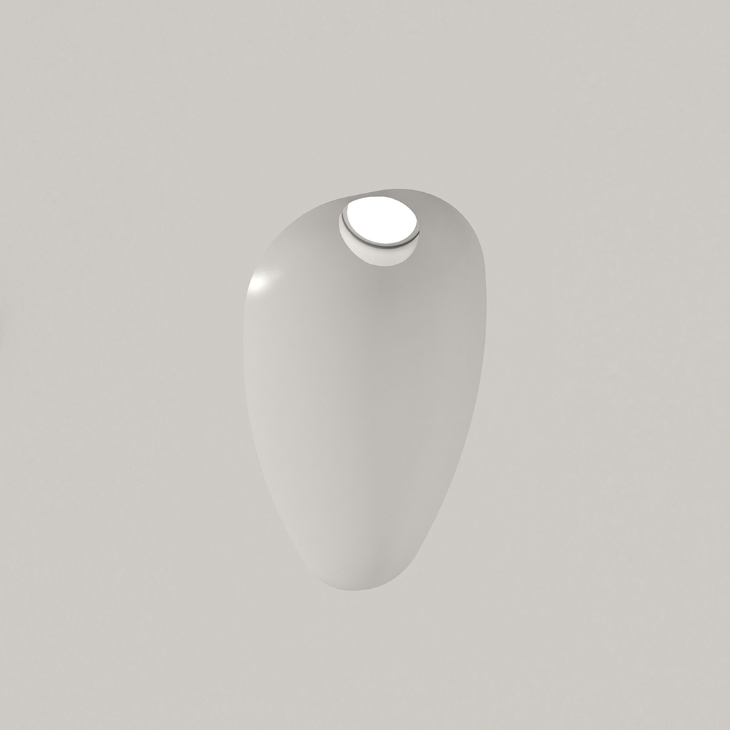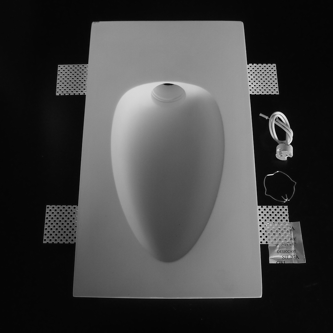 Designed to be plastered seamlessly into the wall, Fos 14 architectural wall lighting by Nama is particularly useful for washing steps or hallways with a gentle light while retaining a contemporary look. With a soft organic shape that looks like an inverted egg or teardrop, the light source is recessed into the wall which serves to hide the glare. With a minimum recess depth of 62mm, Fos is made from natural hard wearing plaster. Supplied with a GU5.3 / GU4 lamp holder which is suitable for MR11 LED retrofit bulbs or halogen. Bulb not included with the light fitting.