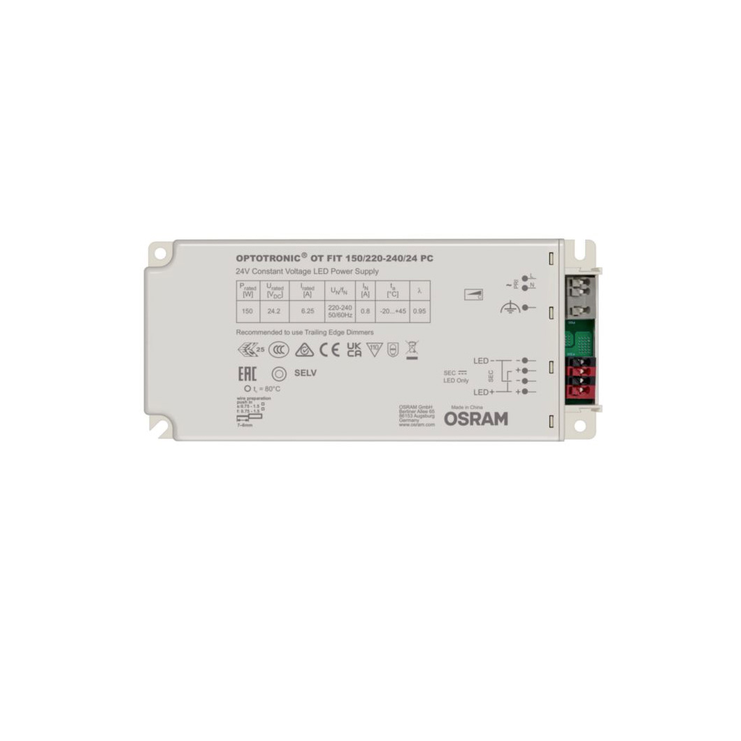 OT FIT 150W is a 24V constant voltage driver, recommended for use with Trailing edge dimming.