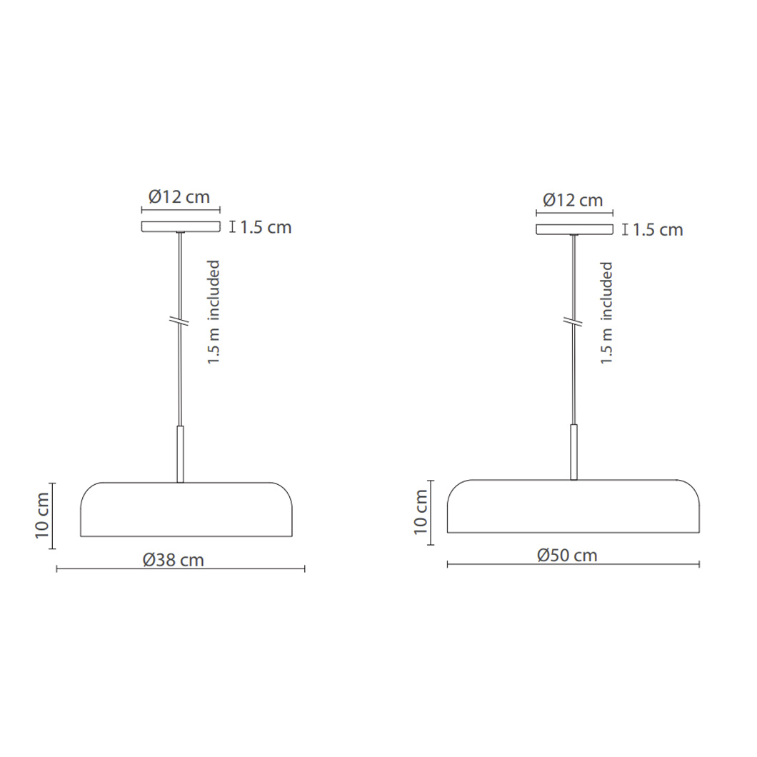 The Rea Pendant by Robin embodies modern style with a sleek design and cutting-edge lighting. Rea's minimalist form is available with 380mm or 500mm diameters, with the shade just 100mm tall. The domed shape is made from aluminium and supplied with a 1.5m textile cable.
