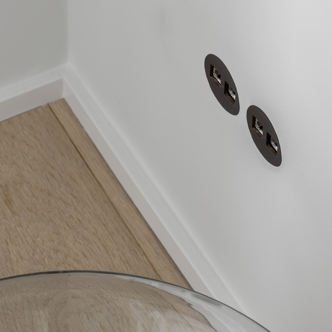 A collection of minimalist designer UK switchless power sockets, data ports, 24V push buttons and 230V switches from Belgium. Perfect for both modern home conversions and for professional projects, rond by prado offer outstanding build quality with a stunning selection of solid brass finishes.
