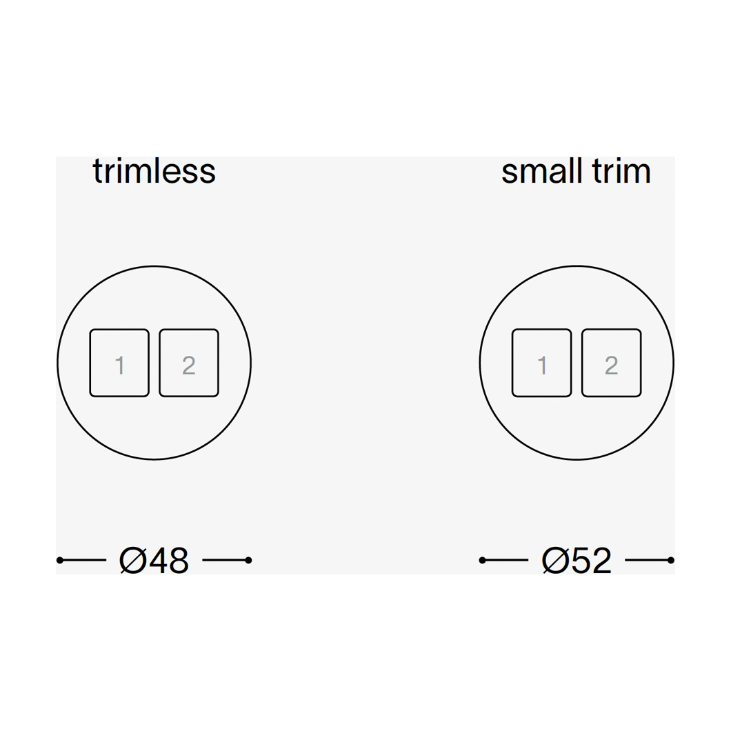 - Small trim design (Ø52mm) features a small lip which protrudes from the mounting surface