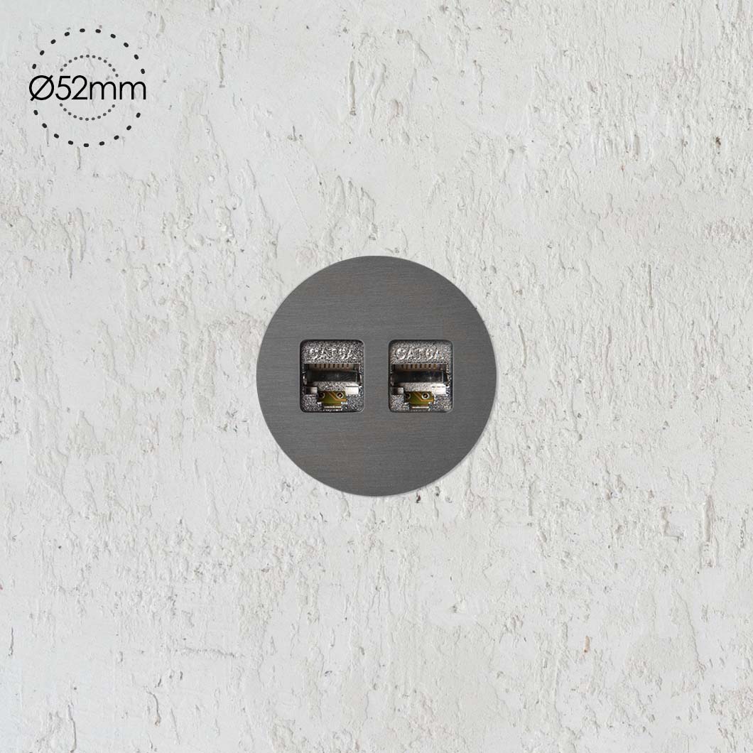 The minimalist rond data port socket. One module, endless possibilities. Use the retrofit kit for installation into brick walls and plaster. The small trim (Ø52mm) features a small protruding lip from the wall.