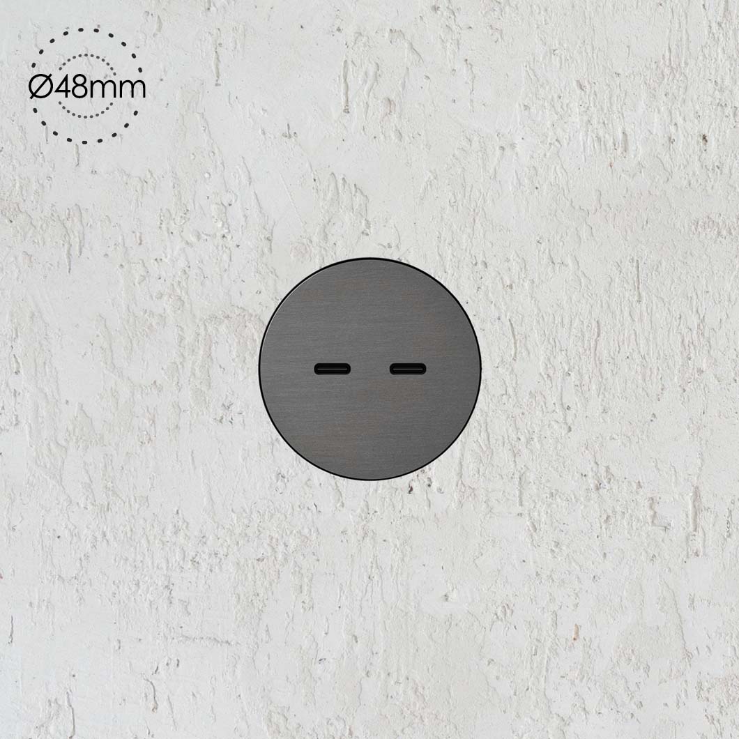 The dual USB-C socket by rond is designed to charge your mobile phone and tablet without the need of an adaptor. The Trimless version (Ø48mm) creates a flush-to-the-wall finish. The 30W module is finished in aluminium white or black, or in custom brushed nickel, brushed brass, light bronze, dark bronze, canon de fusil dark (gun metal) and canon de fusil light.