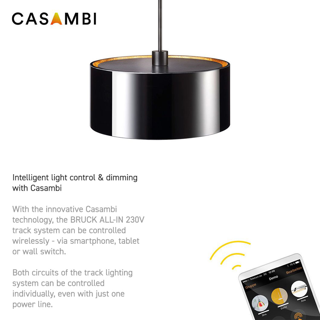 The ALL-IN track system can also be used with the Casambi dimming units to give flexible control of all the lights in your home. Create the perfect mood for all situations wirelessly via Bluetooth 4.0 and save them as pre-set scenes on the Casambi app from your smartphone. Or control the scene at the touch of a button, either with Casambi wireless wall switches or with an off-the-shelf push dimmable on/off switch.
